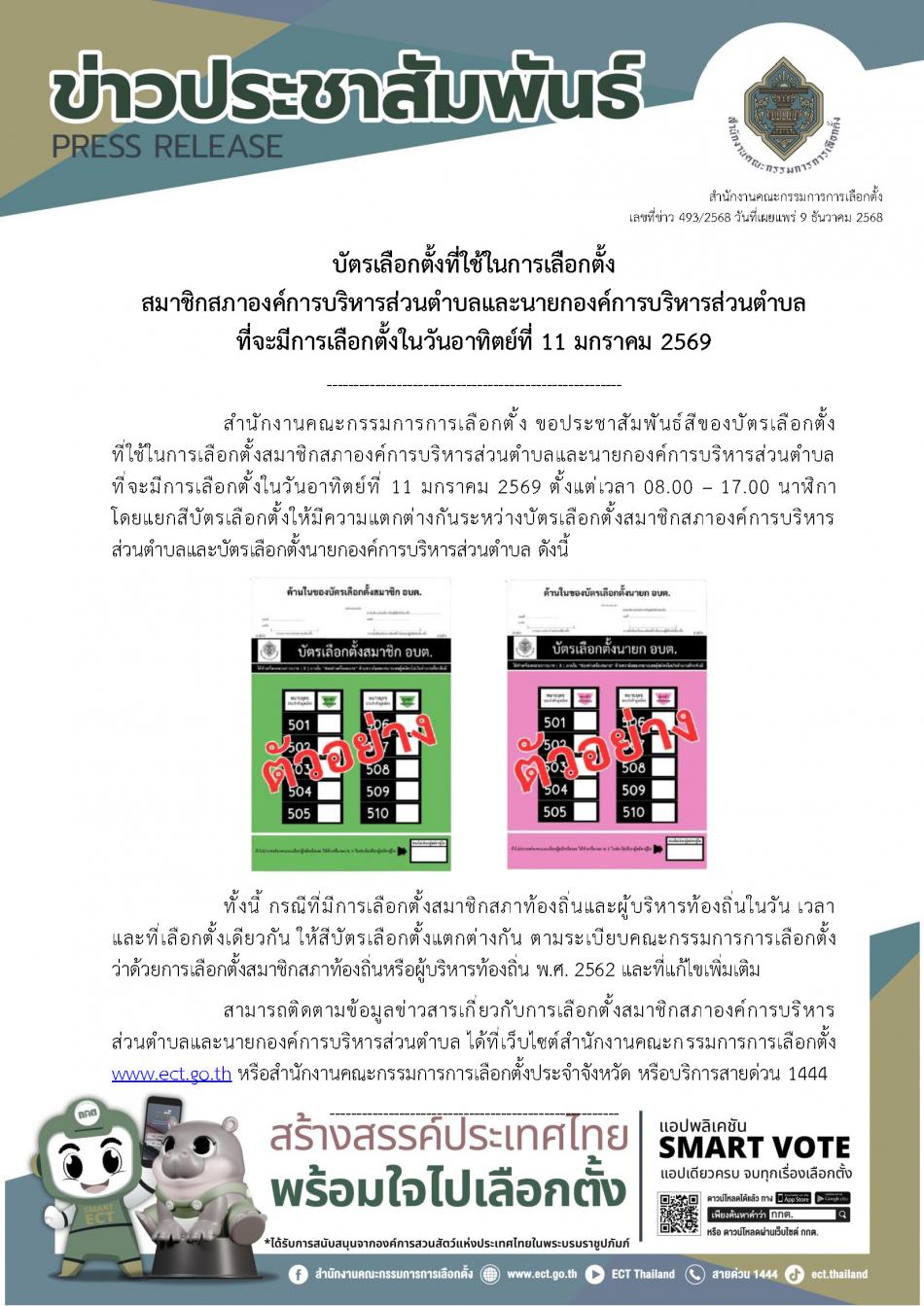 บัตรเลือกตั้งที่ใช้ในการเลือกตั้งสมาชิกสภาองค์การบริหารส่วนตำบลและนายกองค์การบริหารส่วนตำบล[11 ธันวาคม 2568]