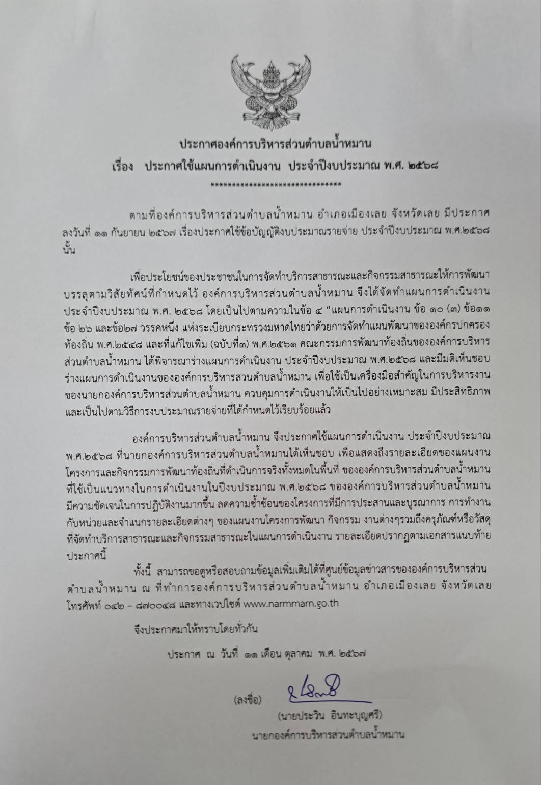 ประกาศใช้แผนการดำเนินงาน ประจำปีงบประมาณ พ.ศ.2568
