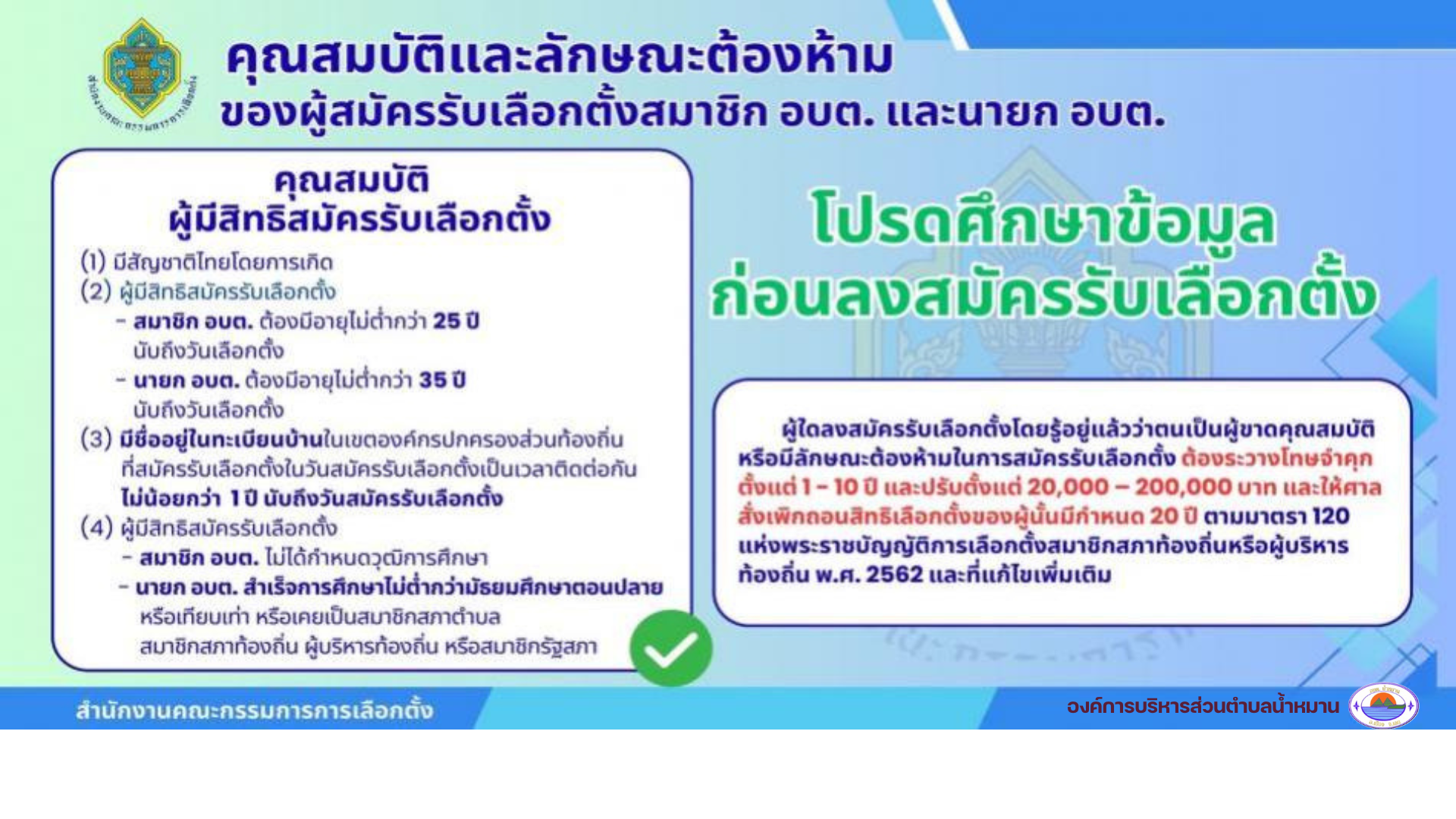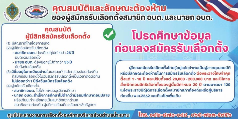 ????คุณสมบัติและลักษณะต้องห้ามของผู้สมัครรับเลือกตั้งสมาชิก อบต.และนายก อบต.[22 ตุลาคม 2568]