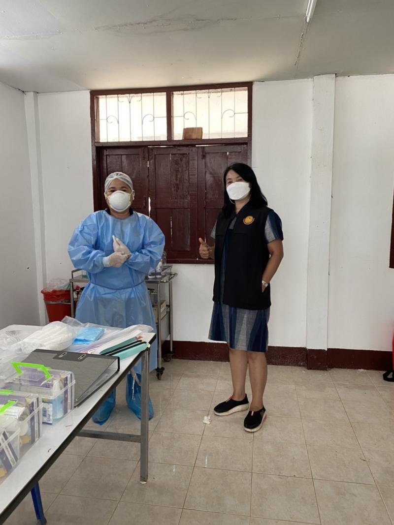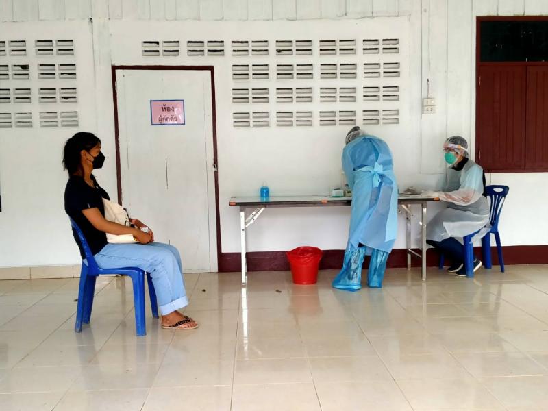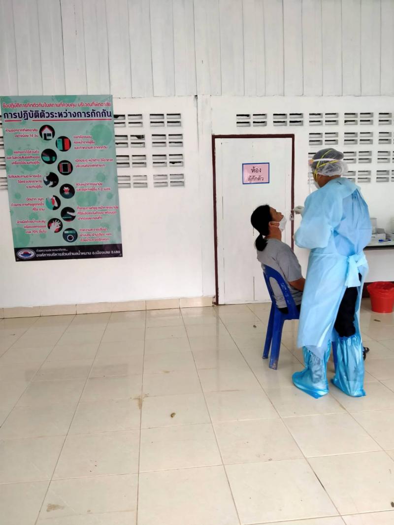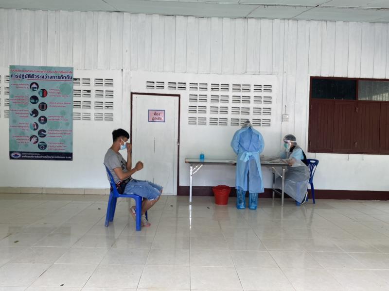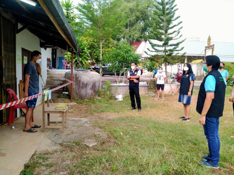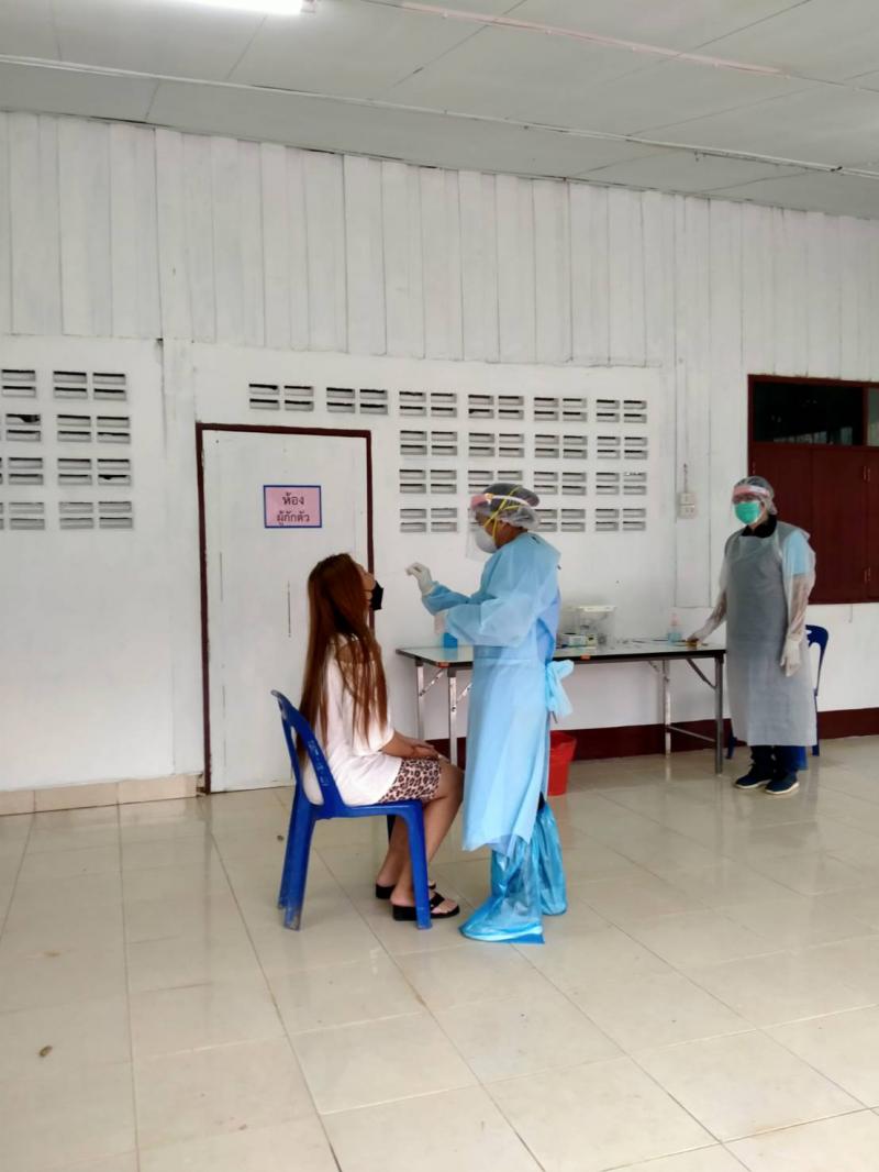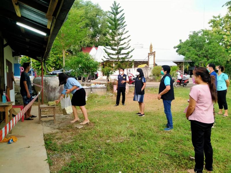 ตรวจ ATK ให้กับผู้เดินทางกลับจากการขายลอตเตอรี่ และมอบสิ่งของ ให้กับผู้กักตัว