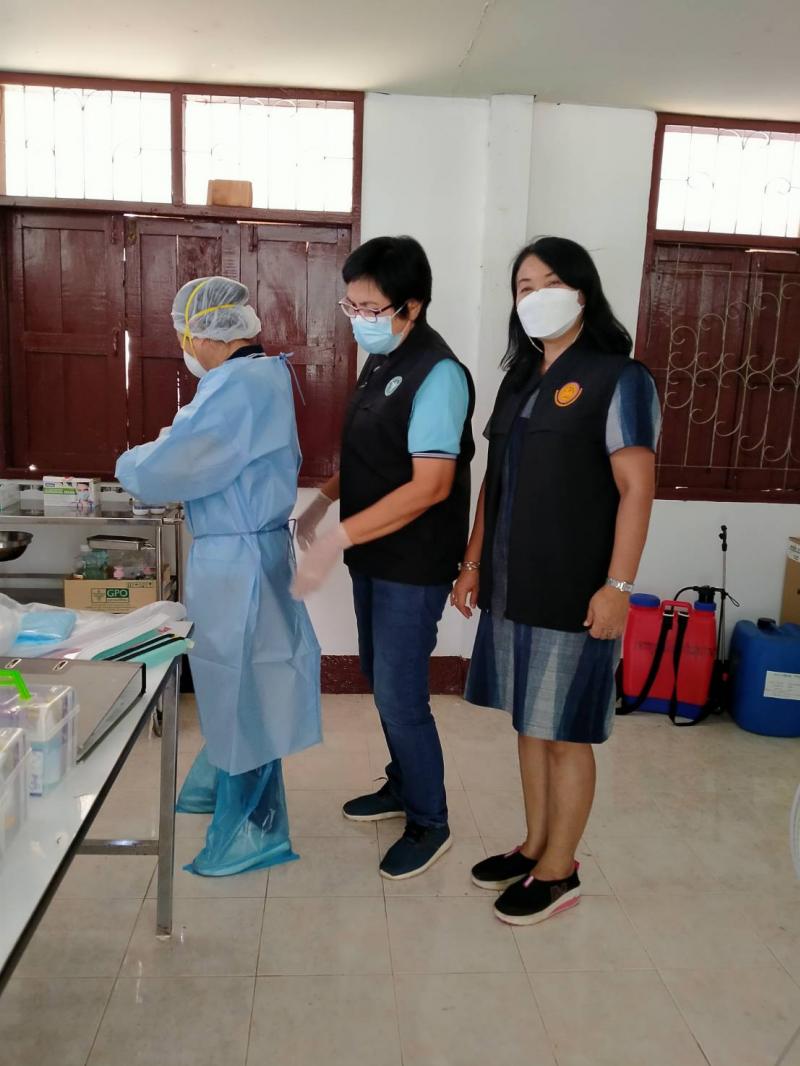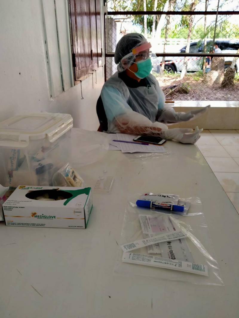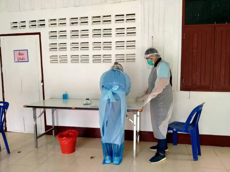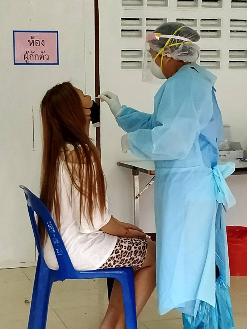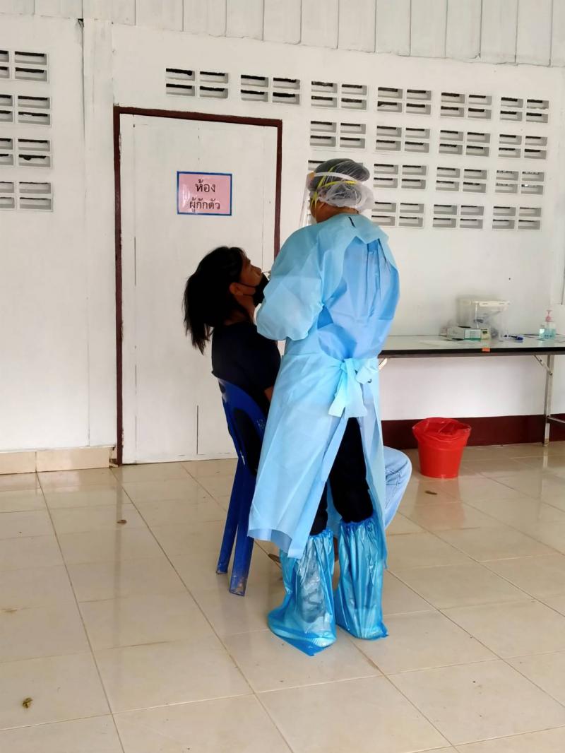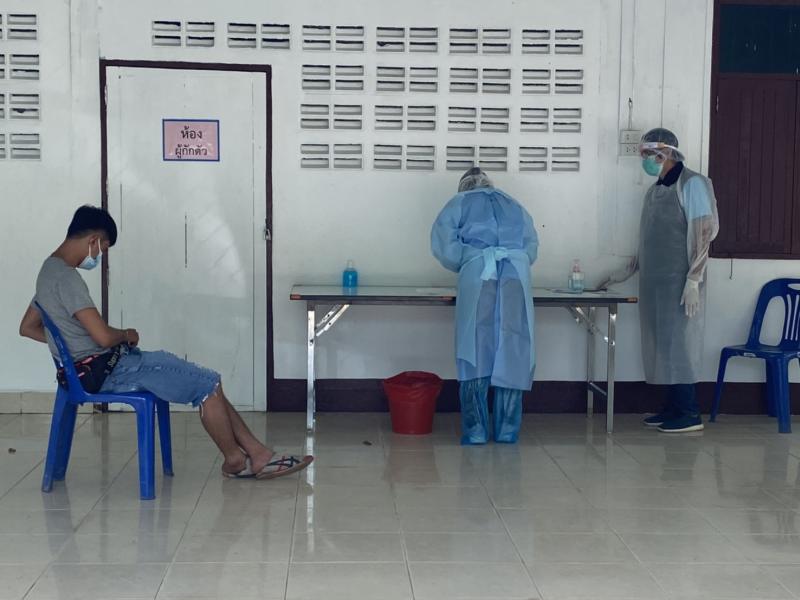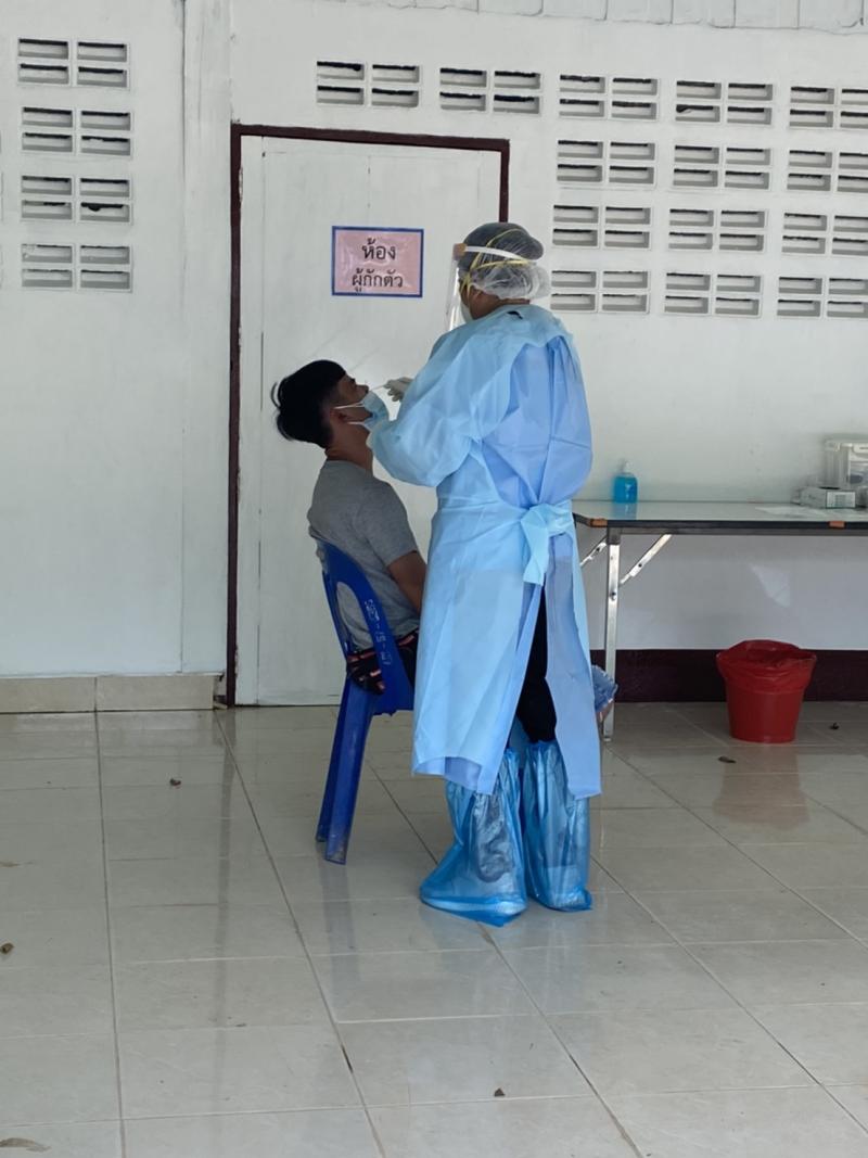 ตรวจ ATK ให้กับผู้เดินทางกลับจากการขายลอตเตอรี่ และมอบสิ่งของ ให้กับผู้กักตัว