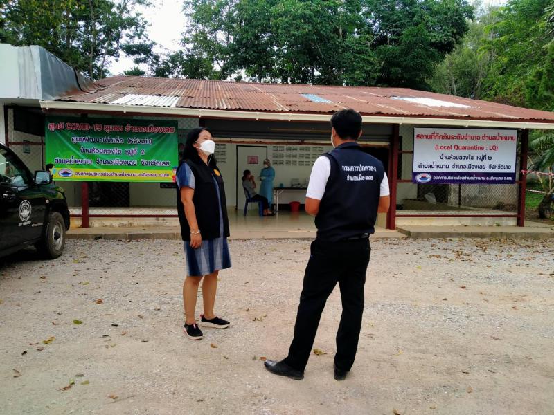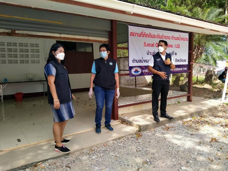 และ ตรวจเยี่ยม ให้คำแนะนำในการกักตัว และมอบสิ่งของ ให้กับผู้กักตัว เพื่อป้องกันการแพร่ระบาดของโรคติดเชื้อไวรัสโคโรนา 2019 ( COVID -19 ) ณ บ้านไร่ม่วง หมู่ที่ 1 และ โป่งเบี้ย หมู่ที่ 3 ตำบลน้ำหมาน อำเภอเมืองเลย จังหวัดเลย