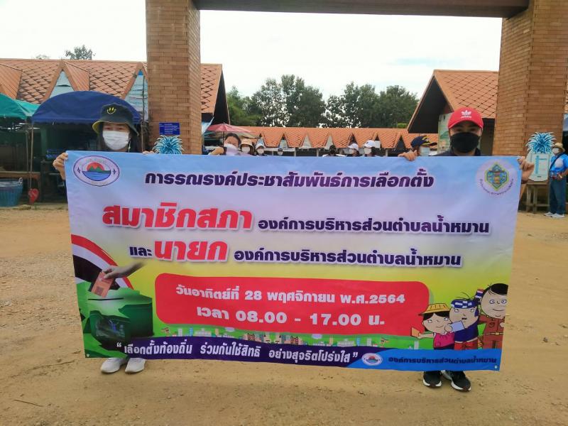รณรงค์ประชาสัมธ์ให้พ่อแม่พี่น้องชาวตำบลน้ำหมานออกไปใช้สิทธิเลือกตั้งสมาชิกสภาองค์การบริหารส่วนตำบลน้ำหมานและนายกองค์การบริหารส่วนตำบลน้ำหมาน