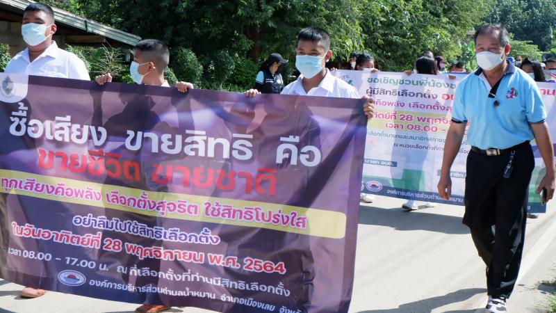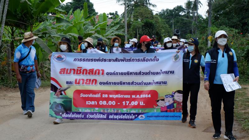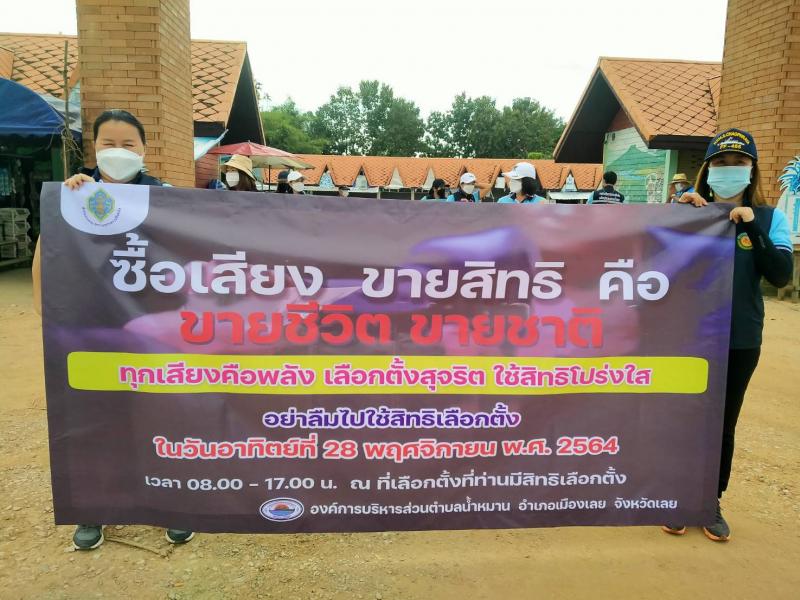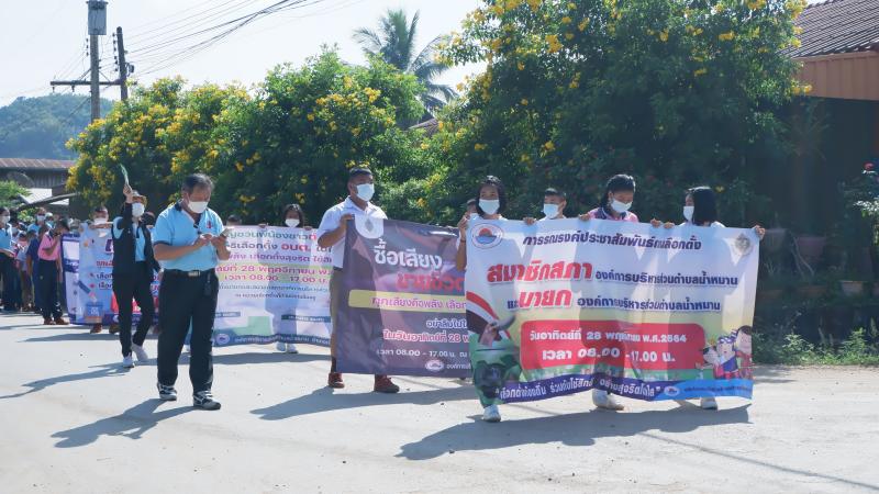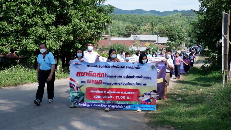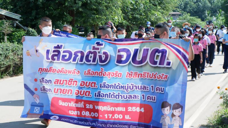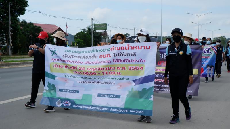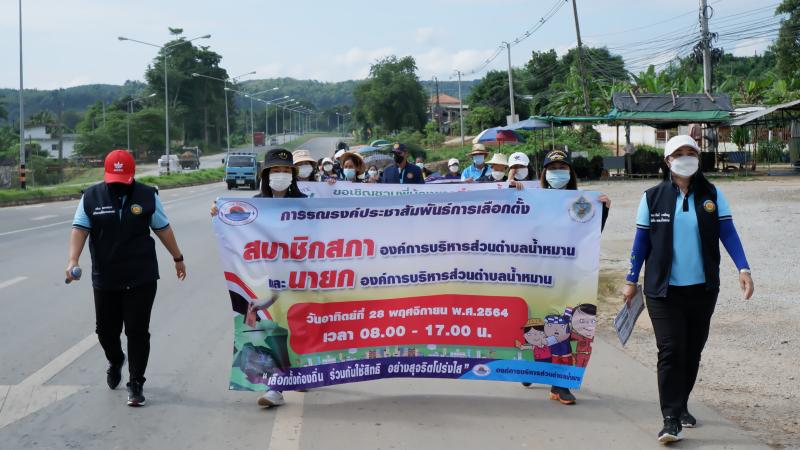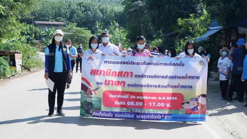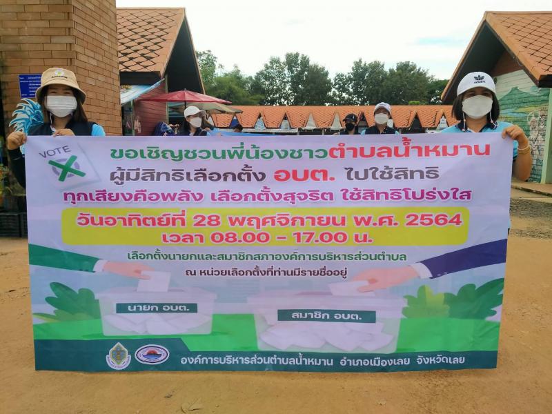 รายละเอียด : เมื่อวันที่ 10 พฤศจิกายน 2564 องค์การบริหารส่วนตำบลน้ำหมาน นำโดยคณะกรรมการการเลือกตั้งประจำองค์การบริหารส่วนตำบลน้ำหมาน ได้เดินรณรงค์ประชาสัมธ์ให้พ่อแม่พี่น้องชาวตำบลน้ำหมานออกไปใช้สิทธิเลือกตั้งสมาชิกสภาองค์การบริหารส่วนตำบลน้ำหมานและนายกองค์การบริหารส่วนตำบลน้ำหมาน ในวันอาทิตย์ที่ 28 พฤศจิกายน 2564 ที่จะถึงนี้ โดยมีคณะครู - นักเรียน จาก โรงเรียนห้วยลวงไช โรงเรียนห้วยสีเสียด - ส้าน กำนันผู้ใหญ่บ้าน ผู้นำชุมชน อสม. ร่วมเดินรณรงค์ประชาสัมพันธ์ ณ หมู่บ้านทุกหมู่บ้านในตำบลน้ำหมาน อำเภอเมืองเลย จังหวัดเลย