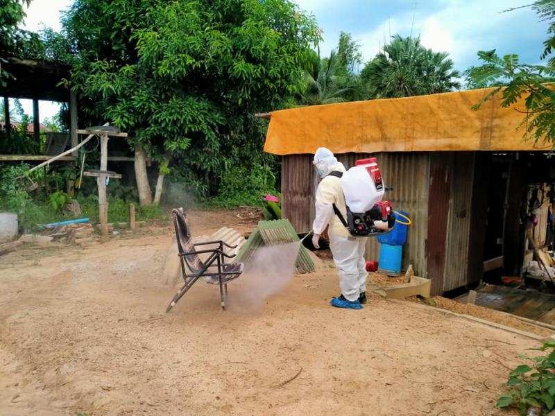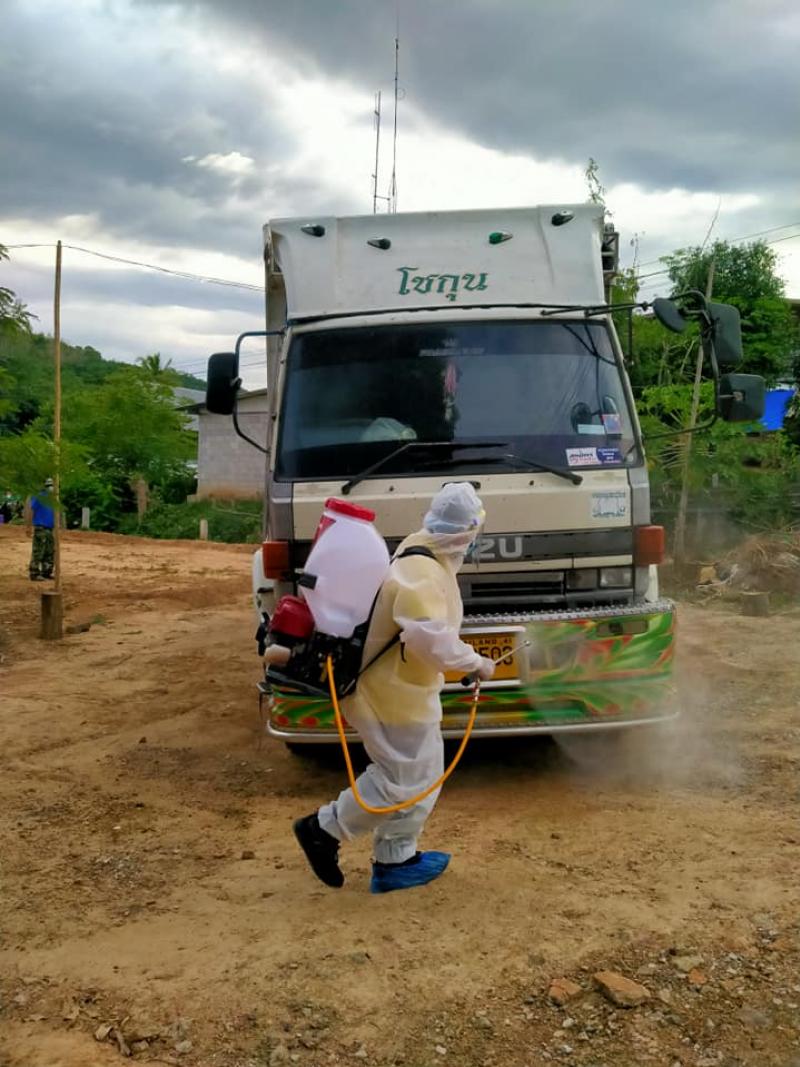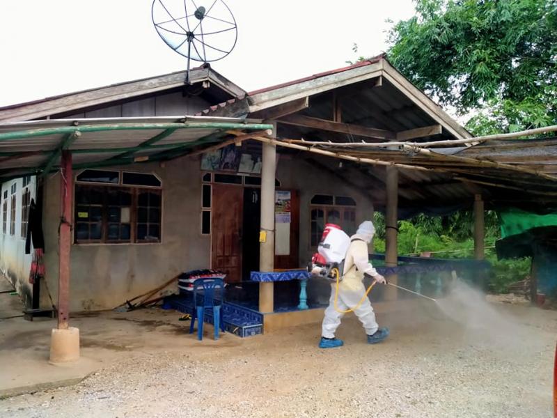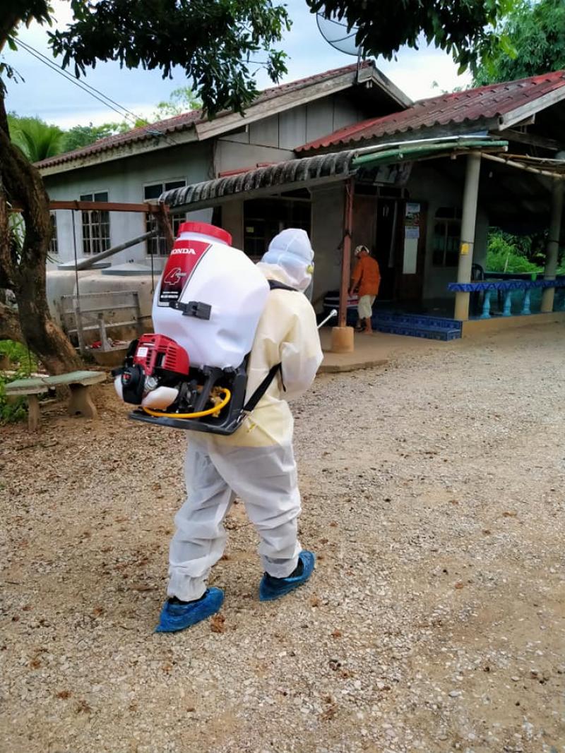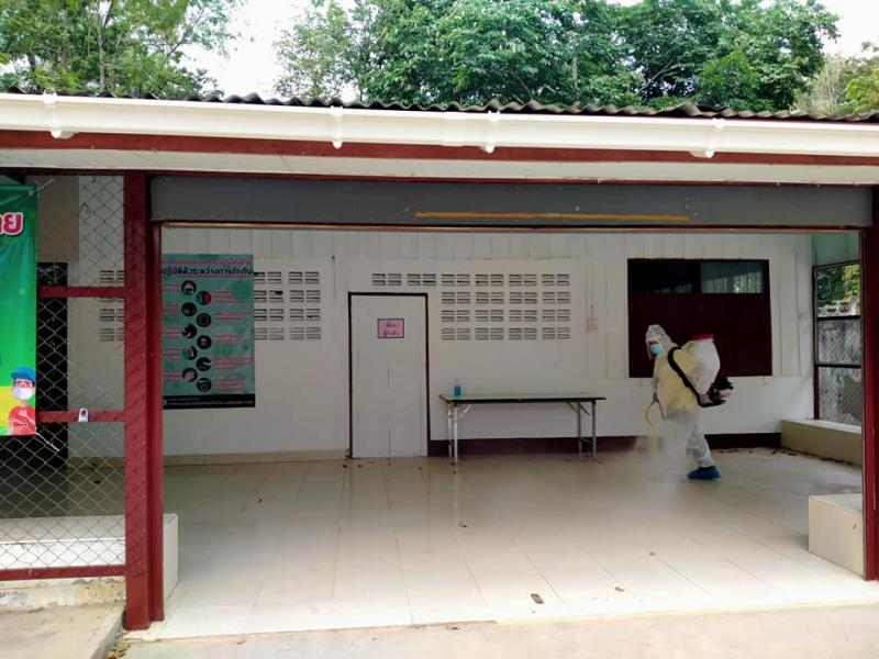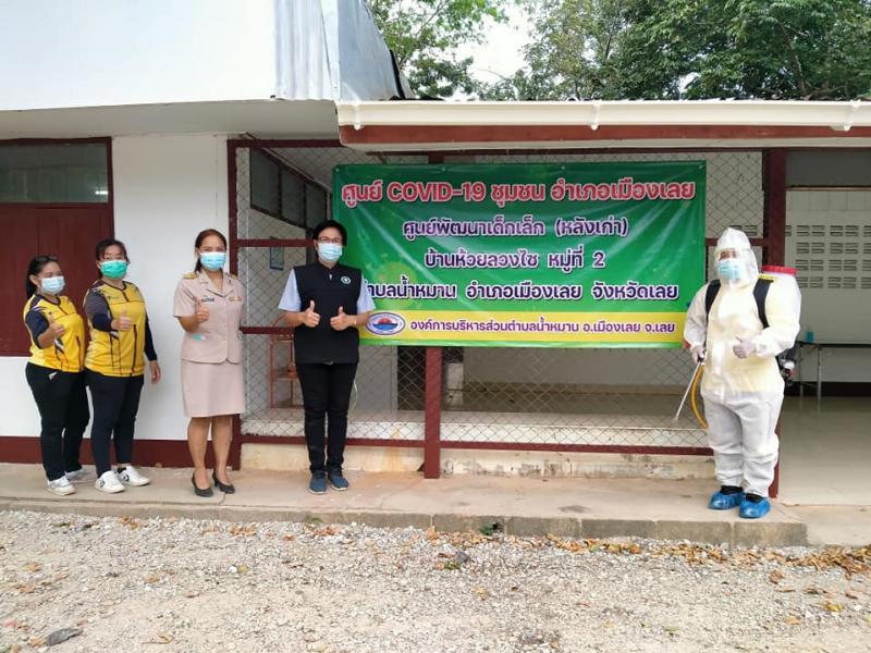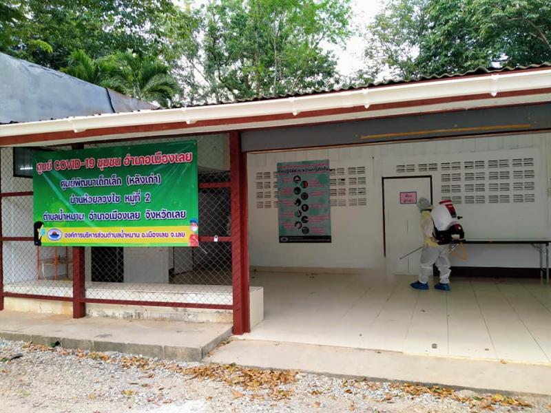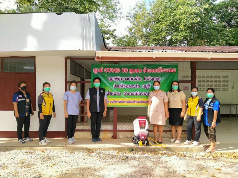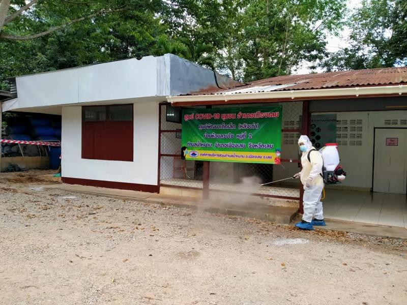 ทำความสะอาด ฉีดพ่นฆ่าเชื้อ บริเวณศูนย์ COVID-19 ชุมชน อำเภอเมืองเลย ตำบลน้ำหมาน