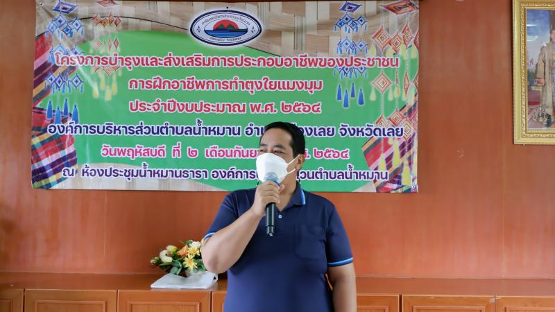 รายละเอียด : เมื่อวันที่ 2 กันยายน 2564 เวลา 08.30 น. องค์การบริหารส่วนตำบลน้ำหมาน ได้จัดทำโครงการบำรุงและส่งเสริมการประกอบอาชีพของประชาชนการฝึกอาชีพการทำตุงใยแมงมุม ประจำปีงบประมาณ พ.ศ.2564 เพื่อเป็นการส่งเสริมให้ประชาชนตำบลน้ำหมานมีอาชีพและรายได้เพิ่มมากขึ้น รวมทั้งเป็นการอนุรักษ์ศิลปวัฒนธรรมให้คงอยู่สืบไป ณ ห้องประชุมน้ำหมานธารา ชั้น 2 องค์การบริหารส่วนตำบลน้ำหมาน อำเภอเมืองเลย จังหวัดเลย