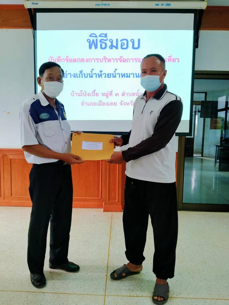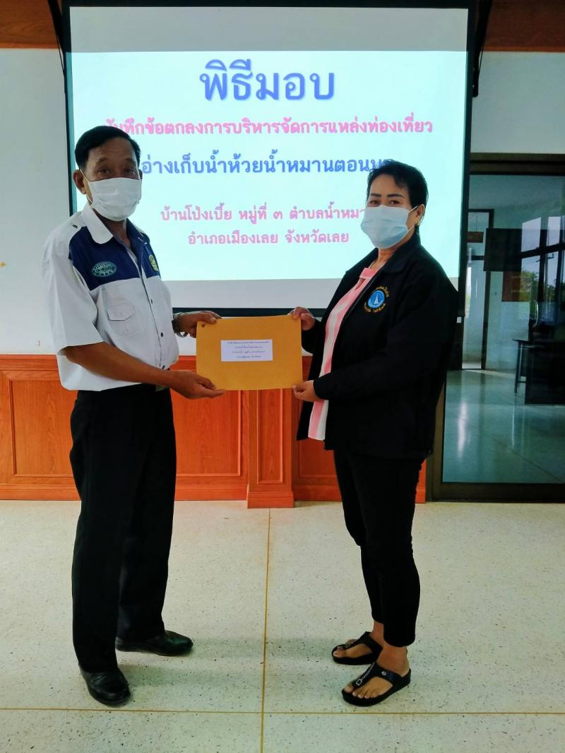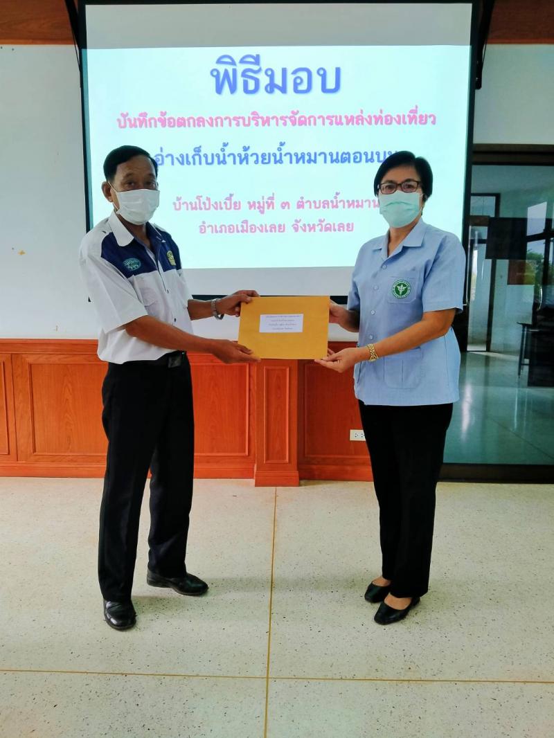 รายละเอียด : เมื่อวันที่ 7 เมษายน 2564 เวลา 09.00 น. องค์การบริหารส่วนตำบลน้ำหมาน ได้จัดพิธีมอบบันทึกข้อตกลงการบริหารจัดการแหล่งท่องเที่ยว อ่างเก็บน้ำห้วยน้ำหมานตอนบนบ้านโป่งเบี้ย ให้กับ โรงพยาบาลส่งเสริมสุขภาพประจำตำบลบ้านไร่ม่วง, กลุ่มแพแม่บ้านโป่งเบี้ยและกลุ่มแพแม่บ้านน้ำหมาน เพื่อให้เป็นไปตามวัตถุประสงค์ของมาตรฐานส่งเสริมการท่องเที่ยว กรมส่งเสริมการปกครองท้องถิ่น ณ ห้องประชุมน้ำหมานธารา ชั้น2 องค์การบริหารส่วนตำบลน้ำหมาน อำเภอเมืองเลย จังหวัดเลย