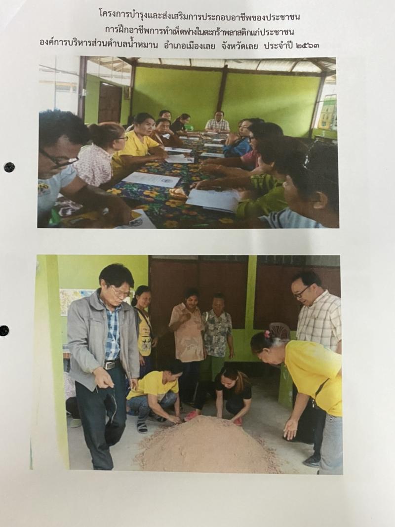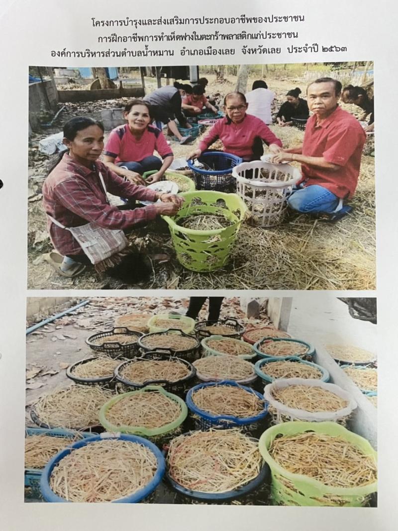 โครงการบำรุงและส่งเสริมการประกอบอาชีพของประชาชน การฝึกอาชีพการทำเห็ดฟางในกระตร้าพลาสติกแก่ประชาชน