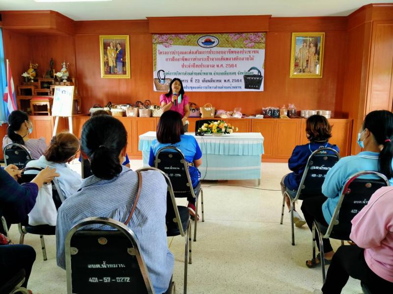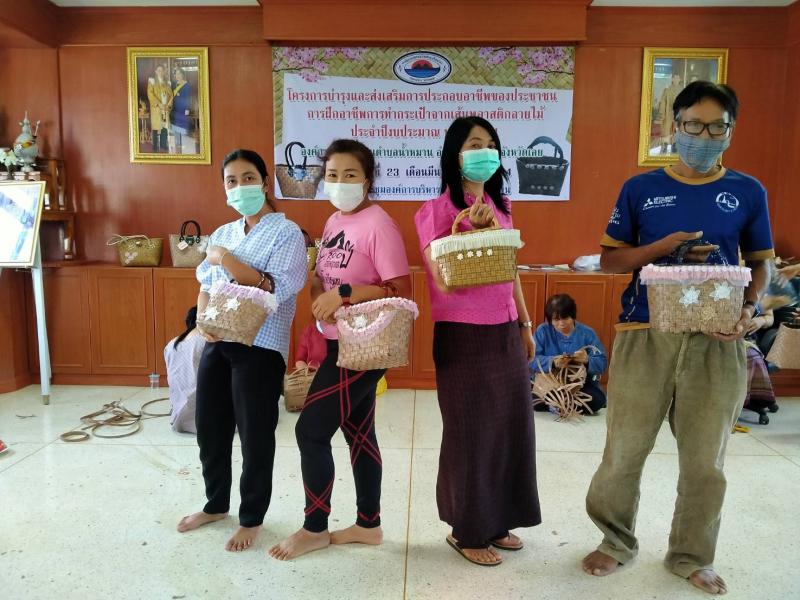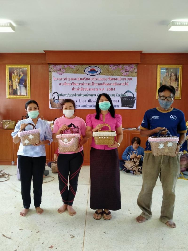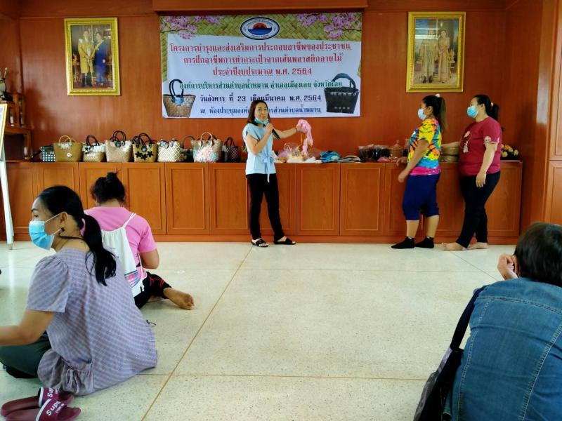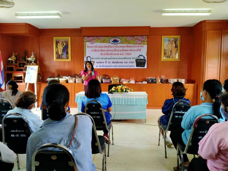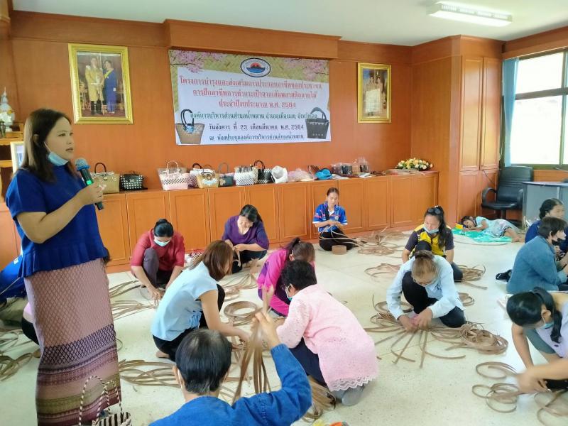 โครงการบำรุงและส่งเสริมการประกอบอาชีพของประชาชนการฝึกอาชีพการทำกระเป๋าจากเส้นพลาสติกลายไม้ ประจำปีงบประมาณ พ.ศ.2564
