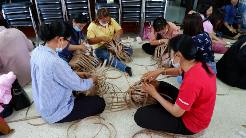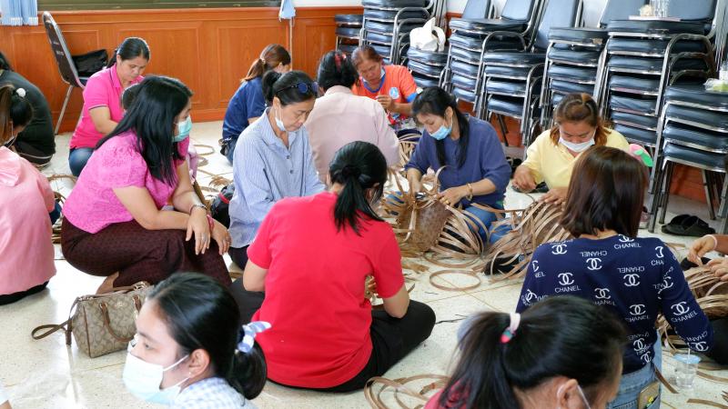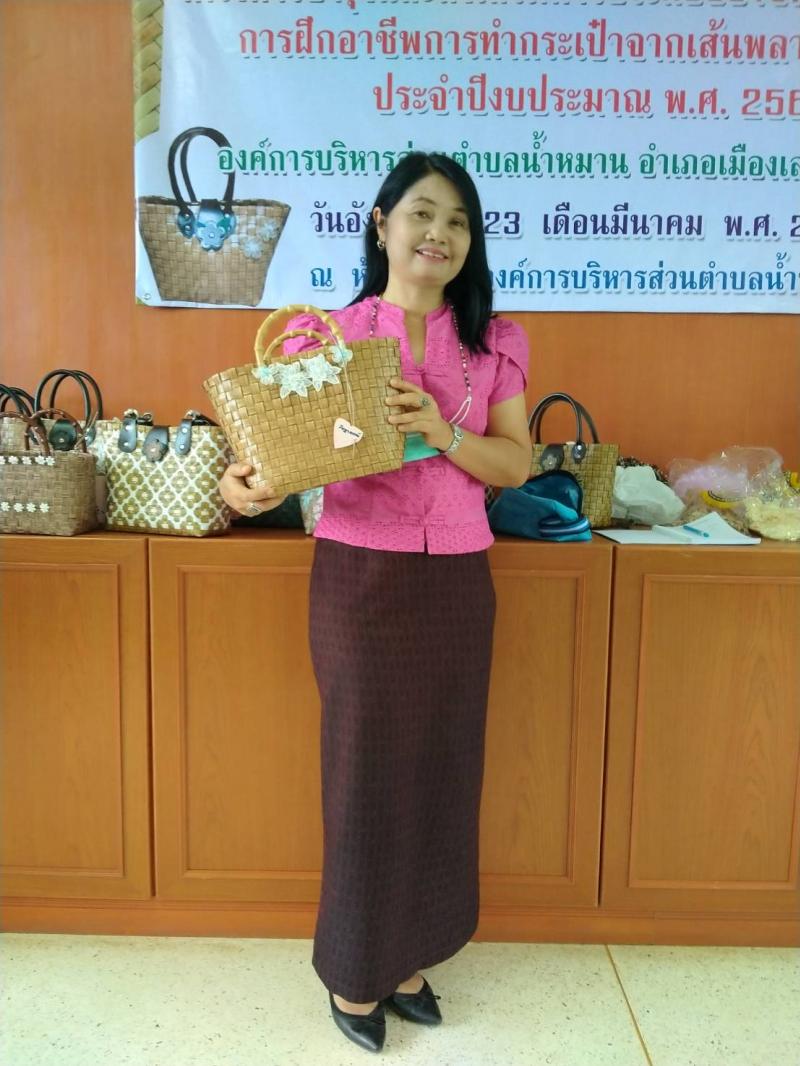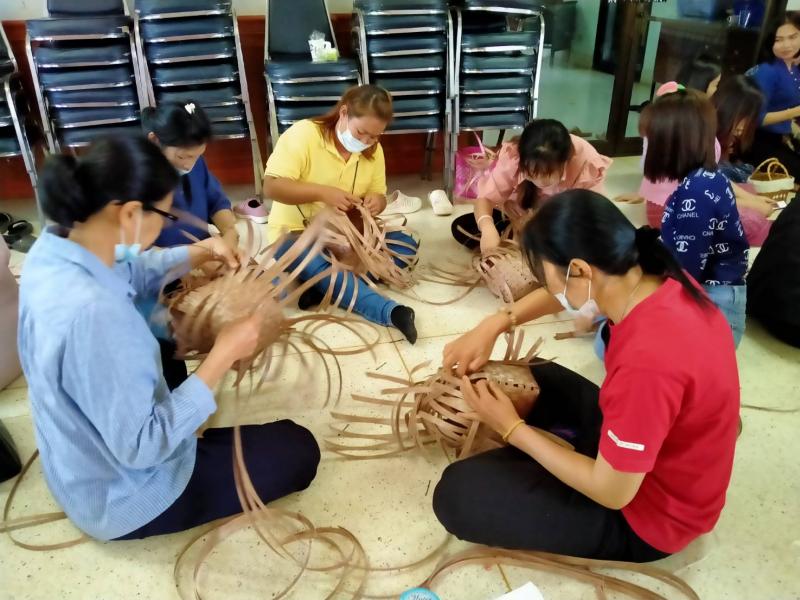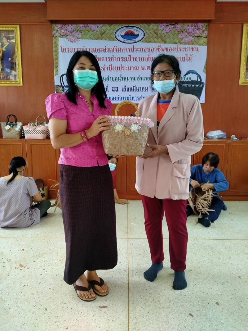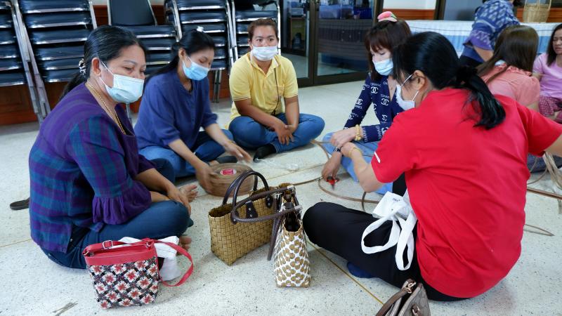 โครงการบำรุงและส่งเสริมการประกอบอาชีพของประชาชนการฝึกอาชีพการทำกระเป๋าจากเส้นพลาสติกลายไม้ ประจำปีงบประมาณ พ.ศ.2564