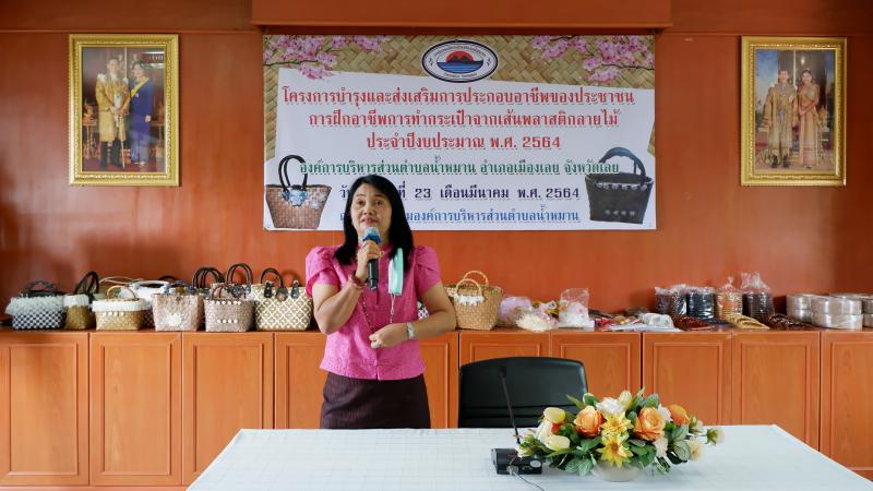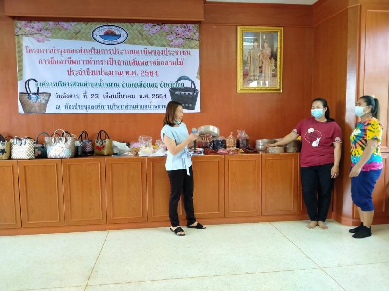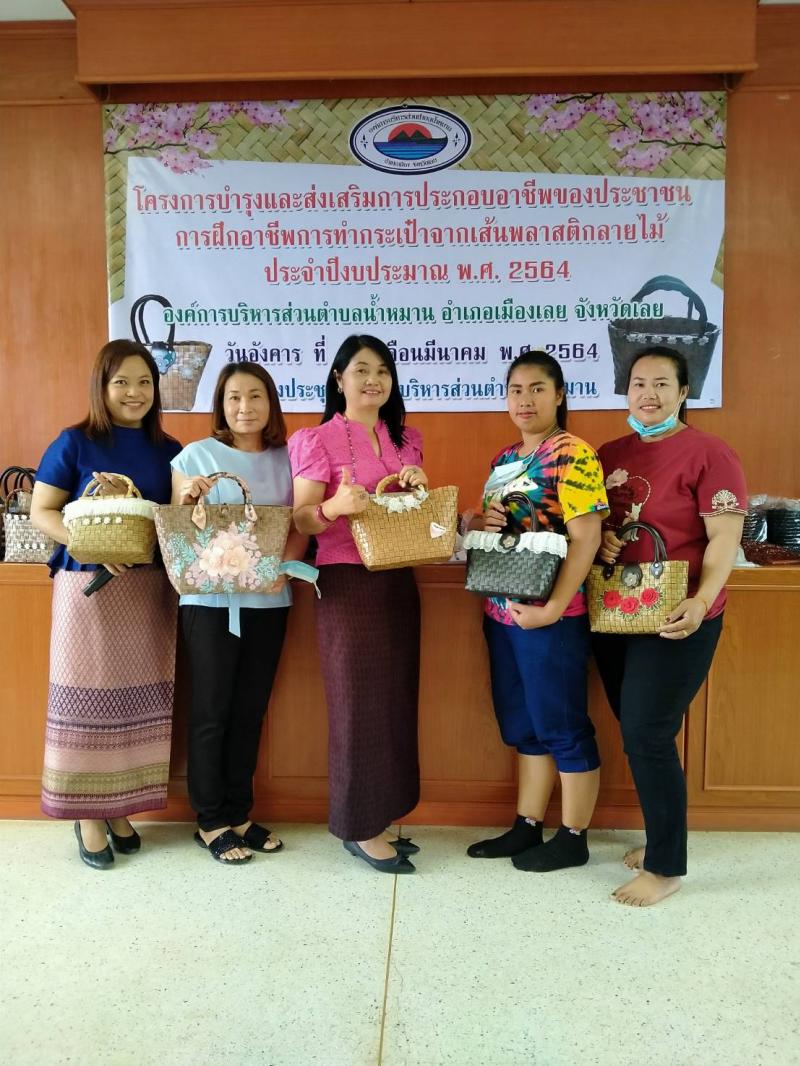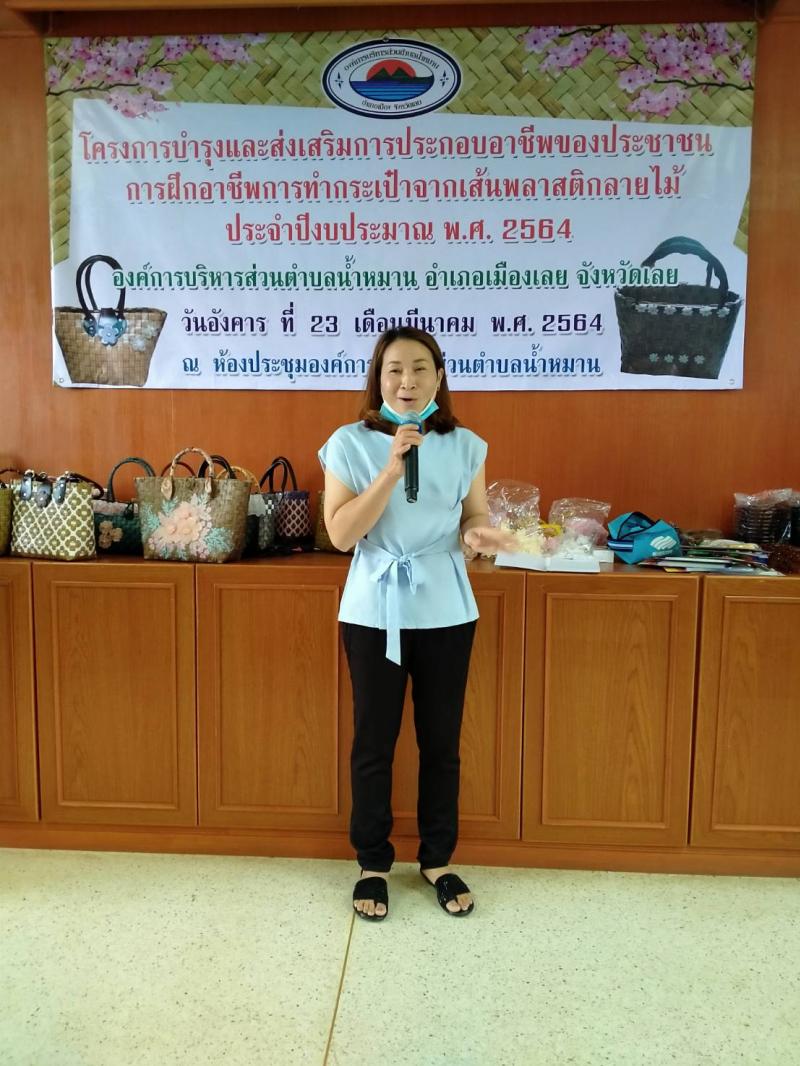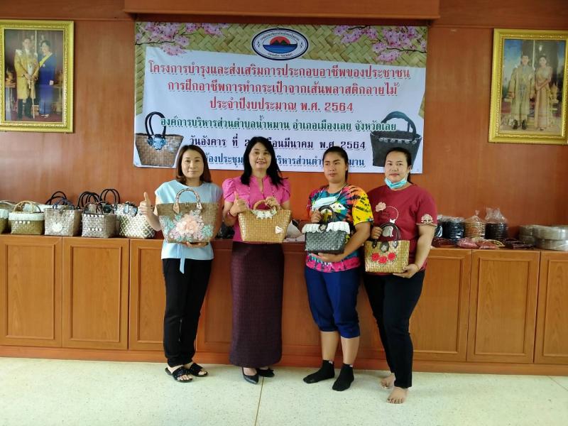 รายละเอียด : เมื่อวันที่ 23 มีนาคม พ.ศ.2564 เวลา 09.00 น. องค์การบริหารส่วนตำบลน้ำหมาน ได้จัดทำโครงการบำรุงและส่งเสริมการประกอบอาชีพของประชาชนการฝึกอาชีพการทำกระเป๋าจากเส้นพลาสติกลายไม้ ประจำปีงบประมาณ พ.ศ.2564 ขึ้น เพื่อเพิ่มรายได้และแก้ไขปัญหาความยากจนและยังเป็นการส่งเสริมให้ประชาชนตำบลน้ำหมานมีอาชีพเสริมทั้งยังเป็นการลดการใช้ถุงพลาสติกในชุมชนได้อีกด้วย โดยมีคณะผู้บริหาร สมาชิกสภาองค์การบริหาร หัวหน้าส่วนราชการพนักงานเจ้าหน้าที่ ประชาชนตำบลน้ำหมานเข้าร่วมโครงการดังกล่าว ณ ห้องประชุมน้ำหมานธารา ชั้น2 องค์การบริหารส่วนตำบลน้ำหมาน อำเภอเมืองเลย จังหวัดเลย