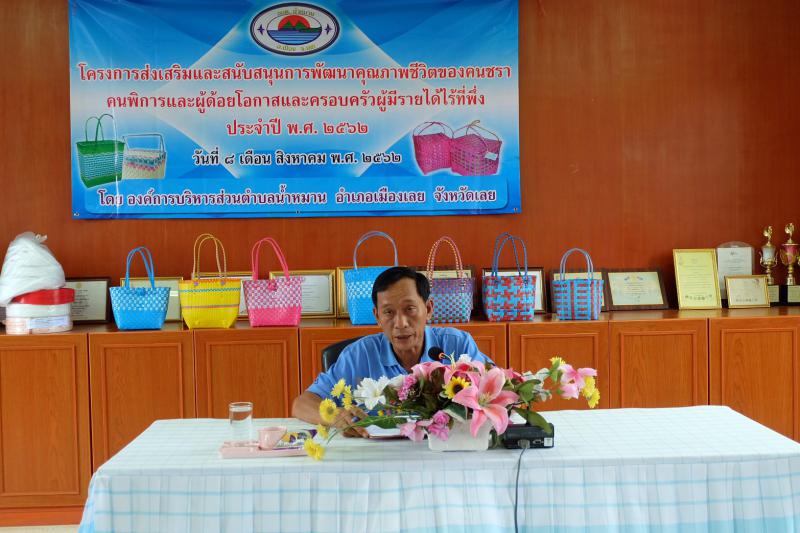 รายละเอียด : วันที่ 8 สิงหาคม พ.ศ.2562 องค์การบริหารส่วนตำบลน้ำหมาน ได้จัดโครงการส่งเสริมและสนับสนุนการพัฒนาคุณภาพชีวิตของคนชรา คนพิการและผู้ด้อยโอกาส และครอบครัวผู้มีรายได้ไร้ที่พึ่ง ประจำปี พ.ศ.2562 เพื่อส่งเสริมและพัฒนาอาชีพ ให้แก่ผู้สูงอายุ ผู้พิการและผู้ด้อยโอกาสและครอบครัวผู้มีรายได้ไร้ที่พึ่งในตำบลน้ำหมานให้มีคุณภาพที่ดีขึ้น โดยมีผู้บริหาร สภาองค์การบริหารส่วนตำบลน้ำหมาน โรงพยาบาลส่งเสริมสุขภาพตำบลบ้านไร่ม่วงตำบลน้ำหมาน ศูนย์พัฒนาครอบครัวในตำบลน้ำหมาน กำนัน ผู้ใหญ่บ้าน ผู้นำชุมชน กลุ่มผู้สูงอายุและผู้พิการ และผู้มีรายได้ไร้ที่พึ่ง อสม.และประชาชนในตำบลน้ำหมาน เข้าร่วมโครงการ ณ ห้องประชุมน้ำหมานธารา องค์การบริหารส่วนตำบลน้ำหมาน อำเภอเมืองเลย จังหวัดเลย