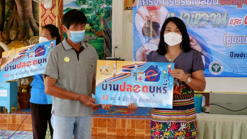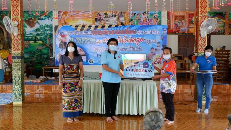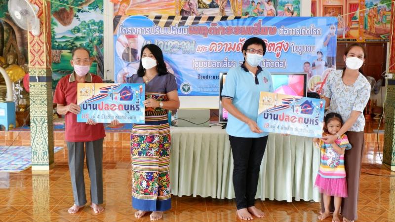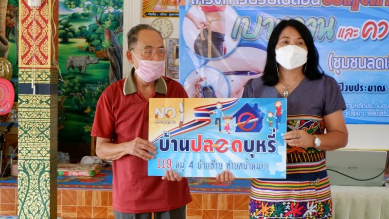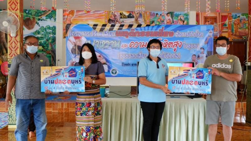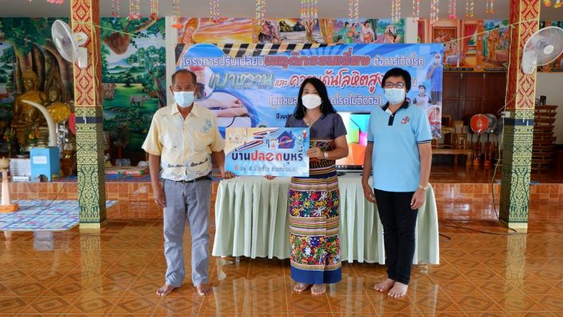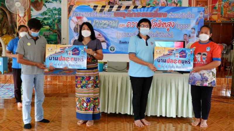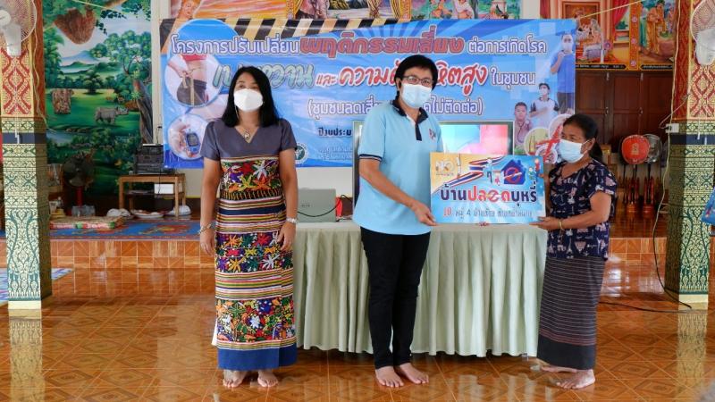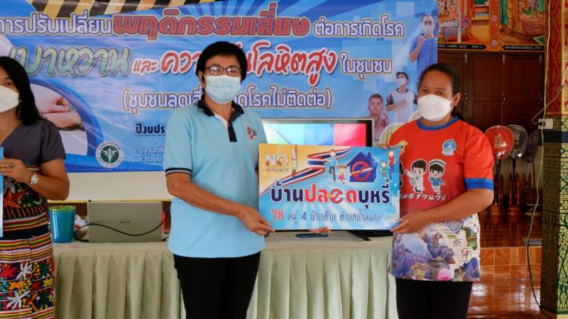 รายละเอียด : เมื่อวันที่ 24 สิงหาคม 2564 เวลา 08.00 น. องค์การบริหารส่วนตำบลน้ำหมาน นำโดย นางสาวพนารัตน์ วงษ์ชมภู ปลัดองค์การบริหารส่วนตำบลน้ำหมาน ได้เข้าร่วมโครงการปรับเปลี่ยนพฤติกรรมเสี่ยงต่อการเกิดโรคเบาหวานและ ความดันโลหิตสูงในชุมชุน โดย รพ.สต.ไร่ม่วง และได้มอบป้าย บ้านปลอดบุหรี่ ให้กับบ้านที่ไม่มีคนสูบบุหรี่ และป้ายงานศพปลอดเหล้า ให้หมู่บ้านในตำบลน้ำหมานจำนวน 6 หมู่บ้าน ซึ่งมี อสม.ในตำบลน้ำหมาน และประชาชนกลุ่มเสี่ยงจากโรคเบาหวานและความดันโลหิตสูง เข้าร่วมโครงการดังกล่าว ณ วัดศรีโนนเมือง บ้านส้าน ตำบลน้ำหมาน อำเภอเมืองเลย จังหวัดเลย