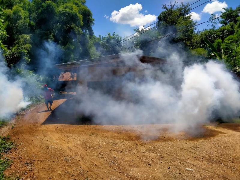 กิจกรรมพ่นหมอกควันและพัฒนาสิ่งแวดล้อมทำลายแหล่งเพาะพันธุ์ลูกน้ำยุงลาย