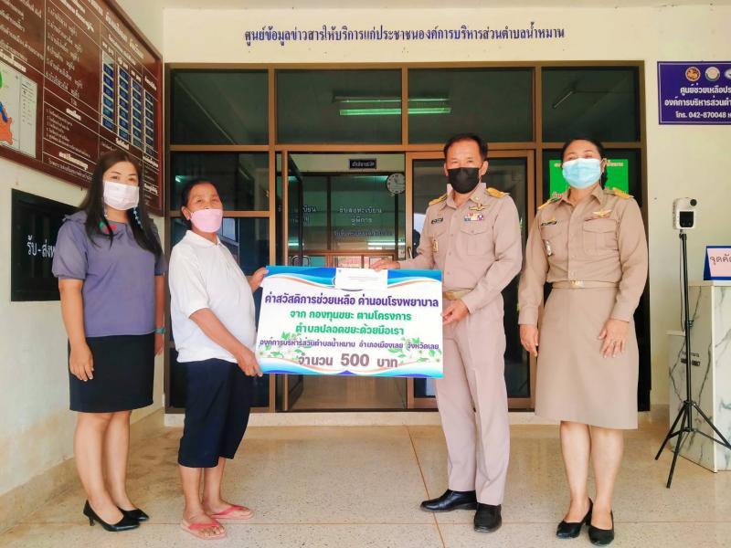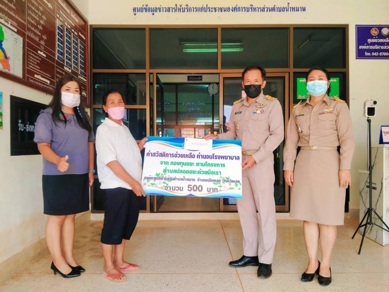 รายละเอียด : วันที่ 30 พฤษภาคม 2565 เวลา 11.00 น. นายประวิน อินทะบุญศรี นายกองค์การบริหารส่วนตำบลน้ำหมาน พร้อมด้วย นางสาวพนารัตน์ วงษ์ชมภู ปลัดองค์การบริหารส่วนตำบลน้ำหมาน มอบเงินสวัสดิการช่วยเหลือค่านอนโรงพยาบาล จำนวน 500 บาท ตามโครงการตำบลปลอดขยะด้วยมือเรา ให้กับครอบครัวสมาชิกกองทุนขยะ นางสง่า ชัยสิทธิ์ บ้านโป่งเบี้ย หมู่ที่3 ตำบลน้ำหมาน อำเภอเมืองเลย จังหวัดเลย