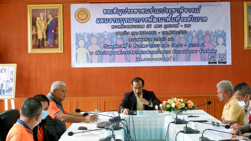 ประชุมการรับฟังความคิดเห็นของประชาชน สำหรับโครงการทางหลวง งานบูรณาการพัฒนาพื้นที่ระดับภาค งบประมาณในปี 2564 ทางหลวงหมายเลย 21 ตอน ภูสวรรค์ - เลย
