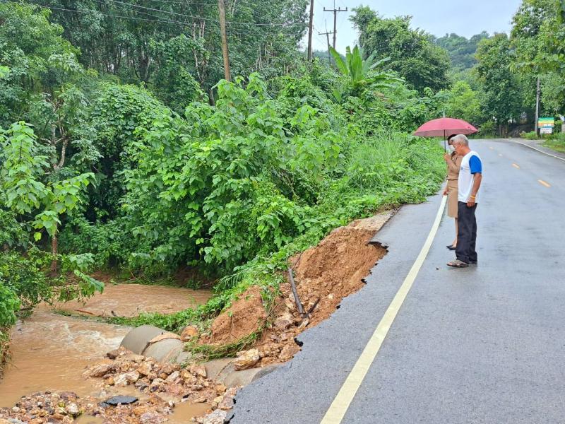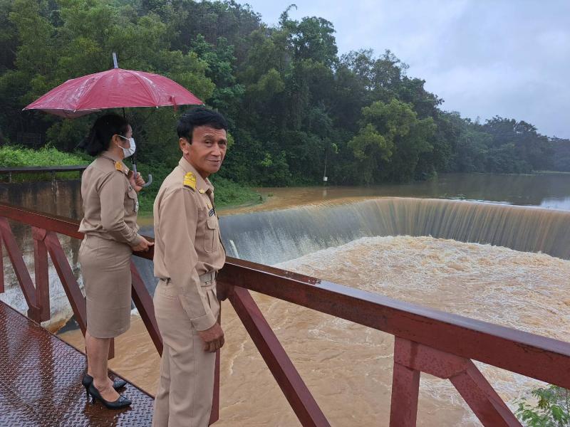 ลงพื้นที่ตรวจสอบระดับน้ำอ่างเก็บน้ำห้วยน้ำหมานตอนบนบ้านโป่งเบี้ย และตรวจสอบถนนสาย ส้าน - ท่าเบิป