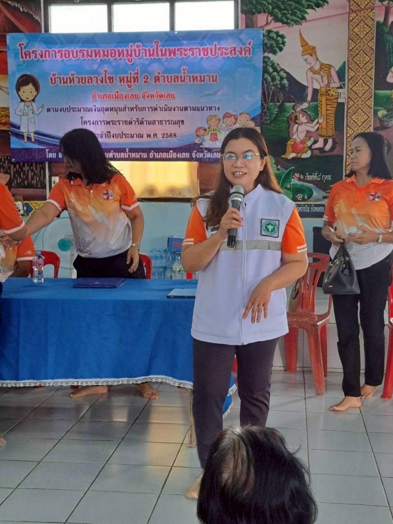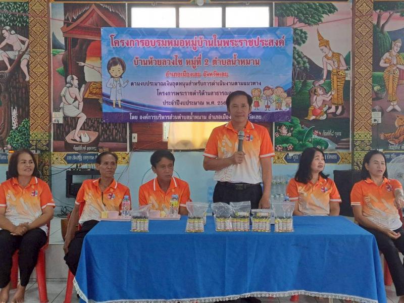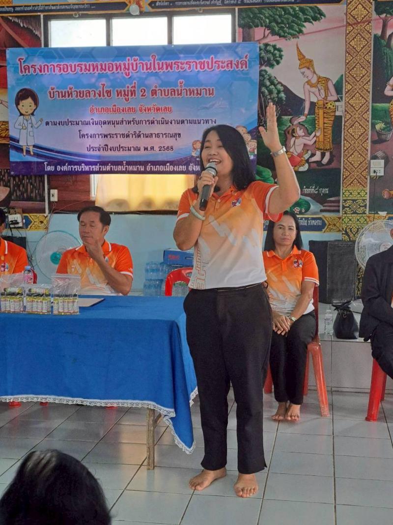 รายละเอียด : เมื่อวันที่ 18 กันยายน 2568 เวลา 09.00 น. องค์การบริหารส่วนตำบลน้ำหมานได้จัดโครงการพระราชดำริด้านสาธารณสุข โครงการอบรมหมอหมู่บ้านในพระราชประสงค์ บ้านห้วยลวงไซ โดยมีนายประวิน อินทะบุญศรี นายกองค์การบริหารส่วนตำนลน้ำหมาน เป็นประธานกล่าวเปิด โครงการ ณ วัดโพนบรรพตวนาราม บ้านห้วยลวงไซ หมู่ที่ 2 ตำบลน้ำหมาน อำเภอเมืองเลย จังหวัดเลย