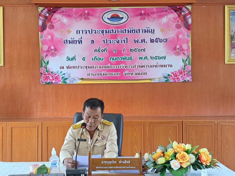 รายละเอียด : วันที่ 5 กุมภาพันธ์ 2567 เวลา 09.00 น. สภาองค์การบริหารส่วนตำบลน้ำหมาน ได้ประชุมสภาสมัยสามัญ สมัยที่ 1 ประจำปี พ.ศ.2567ครั้งที่ 1/2567 เพื่อรายงานงบรับ - จ่าย รายไตรมาสที่1 ประจำปีงบประมาณ พ.ศ.2567 เดือน ตุลาคม - ธันวาคม 2566 ,การพิจารณากำหนดจำนวนสมัยประชุมสามัญ ประจำปี พ.ศ.2567 และการกำหนดสมัยประชุมสามัญ สมัยแรก ประจำปี พ.ศ.2568 ,การพิจารณาอนุมติแก้ไขเปลี่ยนแปลงคำชี้แจงงบประมาณรายจ่ายในงบลงทุนประจำปีงบประมาณ พ.ศ.2567 และข้อราชการอื่นๆ ณ ห้องประชุมสภาองค์การบริหารส่วนตำบลน้ำหมาน อำเภอเมืองเลย จังหวัดเลย