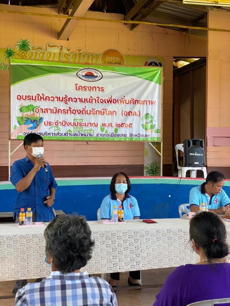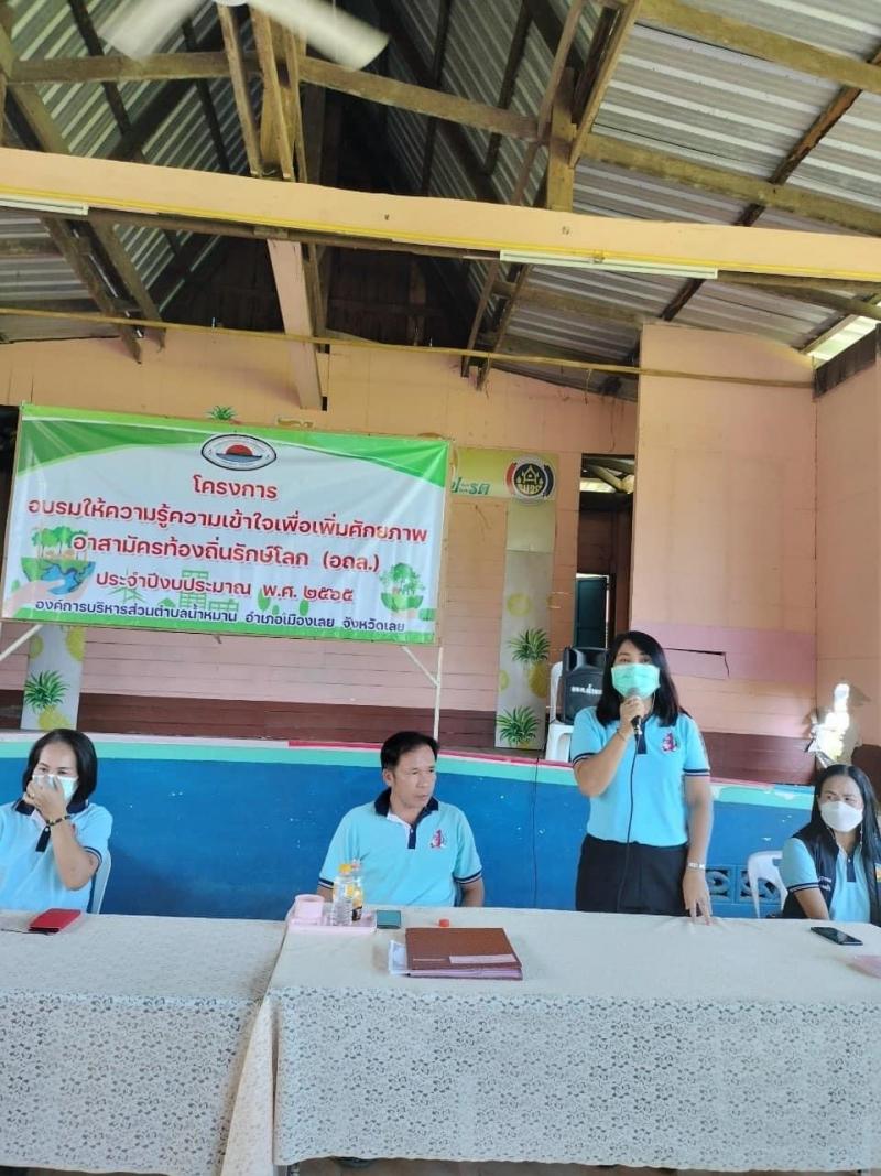 โครงการอบรมให้ความรู้ความเข้าใจเพื่อเพิ่มศักยภาพอาสาสมัครท้องถิ่นรักษ์โลก (อถล.) ประจำปีงบประมาณ พ.ศ. 2565 ณ โรงเรียนมโนบุเรศวรบำรุงการ บ้านไร่ม่วง หมู่ที่ 1 ตำบลน้ำหมาน อำเภอเมืองเลย จังหวัดเลย