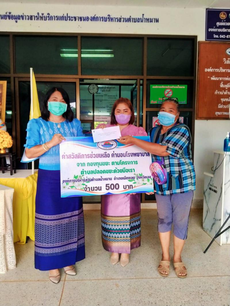 รายละเอียด : วันที่ 22 กรกฎาคม 2565 เวลา 13.30 น. นางสาวพนารัตน์ วงษ์ชมภู ปลัดองค์การบริหารส่วนตำบลน้ำหมาน มอบเงินสวัสดิการช่วยเหลือค่านอนโรงพยาบาล จำนวน 500 บาท จากกองทุนขยะ ตามโครงการตำบลปลอดขยะด้วยมือเราให้กับครอบครัวสมาชิกกองทุนขยะ นางแจ่ม สุวรรณชัย บ้านไร่ม่วง หมู่ที่1 ตำบลน้ำหมาน อำเภอเมืองเลย จังหวัดเลย