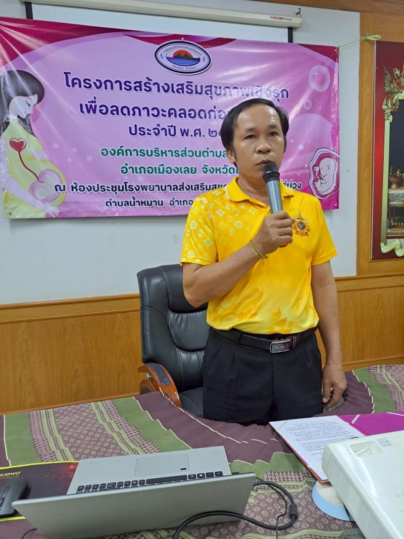 รายละเอียด : เมื่อวันที่ 29 กรกฎาคม 2568 นายประวิน อินทะบุญศรี นายกองค์การบริหารส่วนตำบลน้ำหมาน เป็นประธานเปิดโครงการส่งเสริมสุขภาพเชิงรุกเพื่อลดภาวะคลอดก่อนกำหนด ประจำปีงบประมาณ พ.ศ.2568 ซึ่งมีคณะผู้บริหาร นางสาวพนารัตน์ วงษ์ชมภู ปลัดองค์การบริหารส่วนตำบลน้ำหมาน สมาชิกสภาองค์การบริหารส่วนตำบลน้ำหมาน หัวหน้าส่วนราชการ กำนัน ผู้ใหญ่บ้าน อสม. และคุณแม่ตั้งครรภ์ในพื้นที่ตำบลน้ำหมาน เข้าร่วมโครงการ ณ ห้องประชุมโรงพยาบาลส่งเสริมสุขภาพตำบลบ้านไร่ม่วง ชั้น2 ตำบลน้ำหมาน อำเภอเมืองเลย จังหวัดเลย