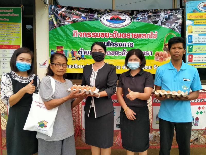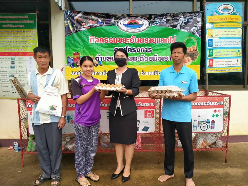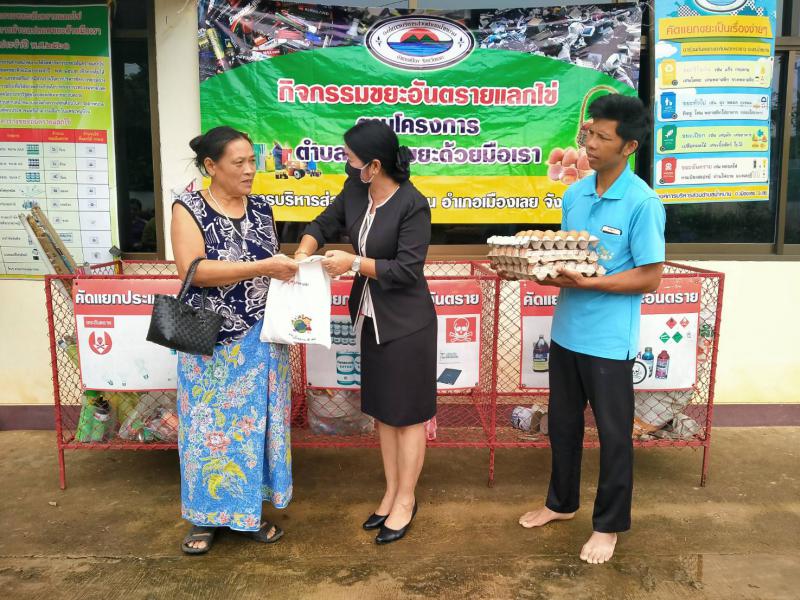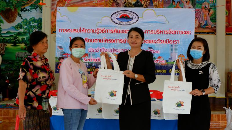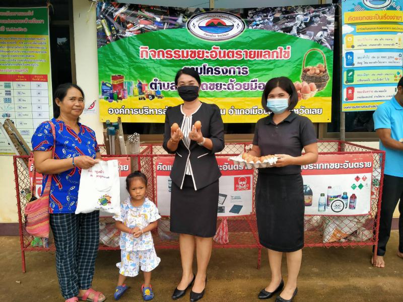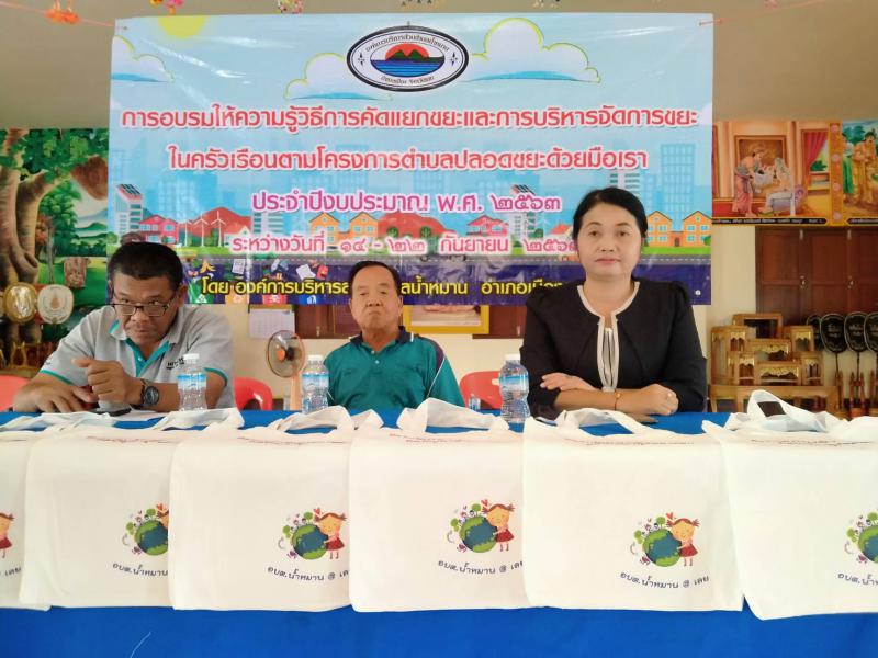 รายละเอียด : วันที่ 21 กันยายน พ.ศ.2563 เวลา 08.00 น. องค์การบริหารส่วนตำบลน้ำหมาน นำโดยนางสาวพนารัตน์ วงษ์ชมภู ปลัดองค์การบริหารส่วนตำบลน้ำหมาน พร้อมด้วยพนักงานเจ้าหน้าที่ ได้จัดการอบรมให้ความรู้วิธีการแยกขยะและการบริหารจัดการขยะในครัวเรือนตามโครงการตำบลปลอดขยะด้วยมือเรา ประจำปีงบประมาณ พ.ศ.2563 โดยมีกิจกรรม ให้ความรู้เรื่องการจัดการขยะ แจกถุงผ้าให้กับสมาชิกกองทุนขยะ และขยะอันตรายแลกไข่ ณ วัดศรีโนนเมือง บ้านส้าน หมู่ที่4 ตำบลน้ำหมาน อำเภอเมืองเลย จังหวัดเลย