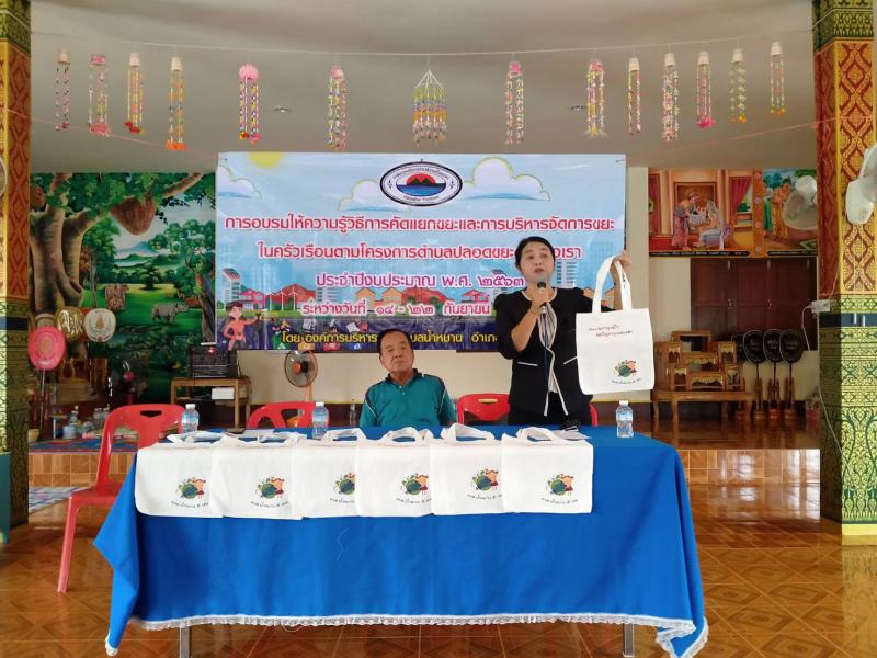การอบรมให้ความรู้วิธีการแยกขยะและการบริหารจัดการขยะในครัวเรือนตามโครงการตำบลปลอดขยะด้วยมือเรา ประจำปีงบประมาณ พ.ศ.2563