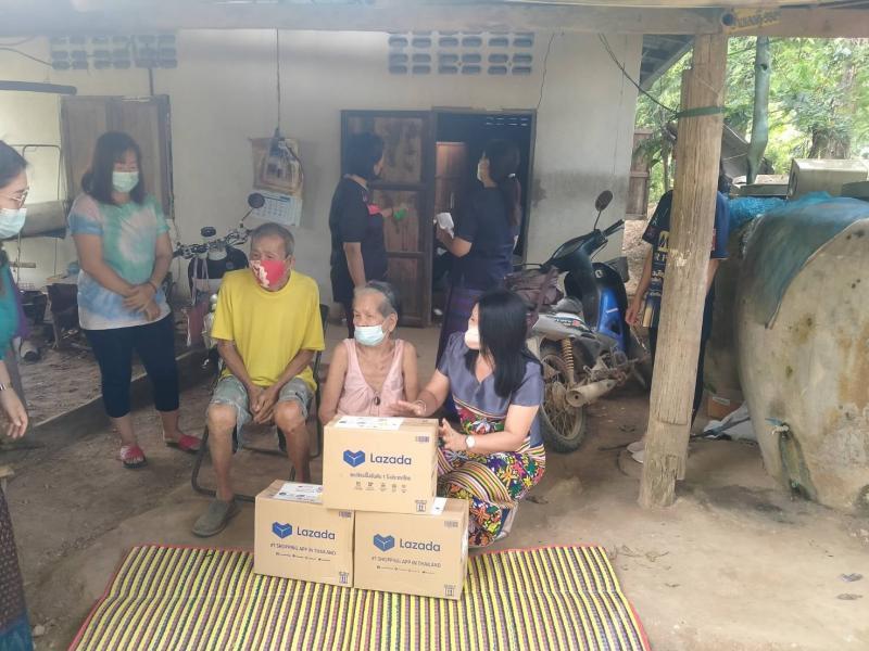 มอบถุงยังชีพจากสมาคมประชาคมคนตาบอดไทย ให้กับนางเทียน หิรัญโท และนางไผ่ สุพรมอินทร์ คนพิการทางการมองเห็นที่ได้รับผลกระทบจากโรคติดเชื้อไวรัสโคโรนา 2019 (COVID - 19 )
