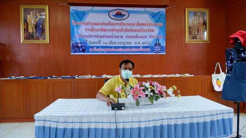 รายละเอียด : วันที่ 31 กรกฎาคม พ.ศ.2563 องค์การบริหารส่วนตำบลน้ำหมาน ได้จัดโครงการบำรุงและส่งเสริมการประกอบอาชีพของประชาชน การฝึกอาชีพการทำถุงผ้ามัดย้อมลดโลกร้อน โดยมีนายชาติชาย จิตรอารีย์ นายกองค์การบริหารส่วนตำบลน้ำหมาน เป็นประธานเปิดโครงการ มีคณะผู้บริหาร สมาชิกองค์การบริหารส่วนตำบลน้ำหมาน พนักงานเจ้าหน้าที่และประชาชนตำบลน้ำหมาน เข้าร่วมโครงการดังกล่าว ณ ห้องประชุมน้ำหมานธารา องค์การบริหารส่วนตำบลน้ำหมาน อำเภอเมืองเลย จังหวัดเลย