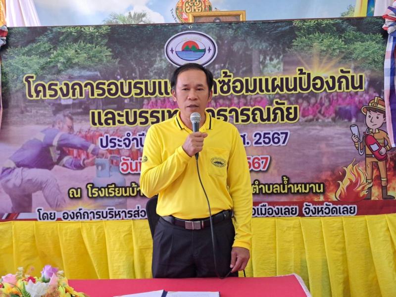 รายละเอียด : วันที่ 9 สิงหาคม 2567 เวลา 09.30 น. นายประวิน อินทะบุญศรี นายกองค์การบริหารส่วนตำบลน้ำหมาน เป็นประธานเปิดโครงการอบรมและฝึกซ้อมแผนป้องกันและบรรเทาสาธารณภัย ให้กับเด็กนักเรียนโรงเรียนบ้านห้วยลวงไซ ซึ่งมีคณะผู้บริหาร นางสาวพนารัตน์ วงษ์ชมภู ปลัดองค์การบริหารส่วนตำบลน้ำหมาน สมาชิกสภาองค์การบริหารส่วนตำบลน้ำหมาน หัวหน้าส่วนราชการ กำนัน ผู้ใหญ่บ้าน และผู้นำชุมชน เข้าร่วมโครงการ ณ โรงเรียนบ้านห้วงลวงไซ หมู่ที่ 2 ตำบลน้ำหมาน อำเภอเมืองเลย จังหวัดเลย
