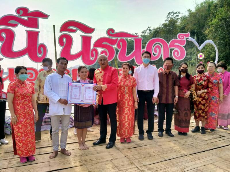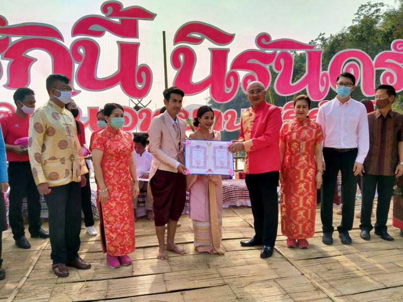 รายละเอียด : เมื่อวันที่ 14 กุมภาพันธ์ 2564 องค์การบริหารส่วนตำบลน้ำหมาน ได้ร่วมกิจกรรมจดทะเบียนสมรส "รักนี้ นิจนิรันดร์ ณ วนอุทยานหริรักษ์" เนื่องในวันแห่งความรัก 14 กุมภาพันธ์ 2564 เพื่อเป็นการส่งเสริมวัฒนธรรมและสืบทอดประเพณีไทเลย ตลอดจนส่งเสริมการท่องเที่ยวและสร้างรายได้ให้กับชุมชน โดยมีนายชัยธวัช เนียมศิริ ผู้ว่าราชการจังหวัดเลยเป็นประธานเปิดงานตามโครงการส่งเสริมวัฒนธรรมประเพณีถิ่นไทเลย" รักนี้ นิจนิรันดร์ ณ วนอุทยานหริรักษ์" ซึ่งมีกิจกรรมทำบุญตักบาตรพระสงฆ์ 9 รูป และมีคู่บ่าว - สาว ร่วมจดทะเบียนสมรส จำนวน 9 คู่ มีขบวนแห่ขันหมาก และบายศรีสู่ขวัญตามประเพณีท้องถิ่นไทเลย โดยมีหน้าส่วนราชการ ญาติพี่น้องคู่บ่าว-สาว และประชาชนตำบลน้ำหมานเข้าร่วมงาน ณ วนอุทยานหริรักษ์ ตำบลน้ำหมาน อำเภอเมือง จังหวัดเลย
