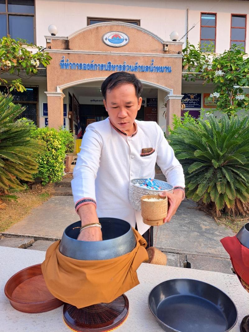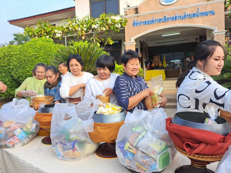 รายละเอียด : วันที่ 11 มกราคม 2567 เวลา 07.00 น. องค์การบริหารส่วนตำบลน้ำหมานได้จัดกิจกรรมทำบุญตักบาตร เนื่องในวันขึ้นปีใหม่ พ.ศ.2567 นำโดยนายประวิน อินทะบุญศรี นายกองค์การบริหารส่วนตำบลน้ำหมาน พร้อมด้วยคณะผู้บริหาร สมาชิกสภาองค์การบริหารส่วนตำบลน้ำหมาน นางสาวพนารัตน์ วงษ์ชมภู ปลัดองค์การบริหารส่วนตำบลน้ำหมาน และหัวหน้าส่วนราชการ พนักงานเจ้าหน้าที่ ผู้ใหญ่บ้าน ผู้นำชุมชนและประชาชนตำบลน้ำหมานร่วมทำบุญตักบาตร ณ องค์การบริหารส่วนตำบลน้ำหมาน อำเภอเมืองเลย จังหวัดเลย