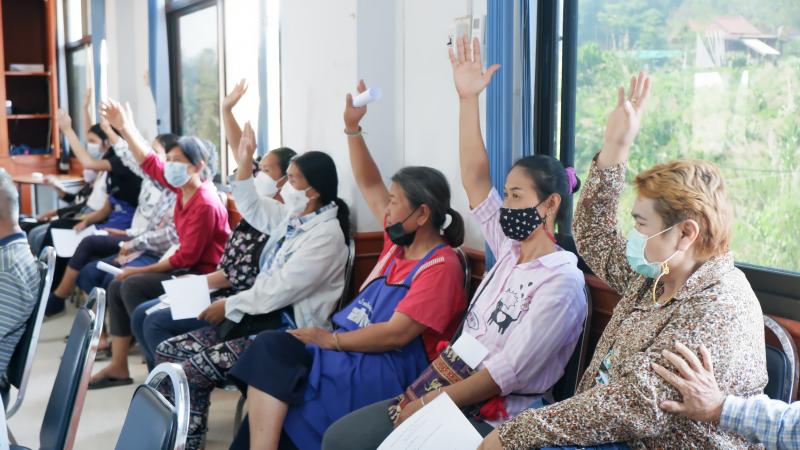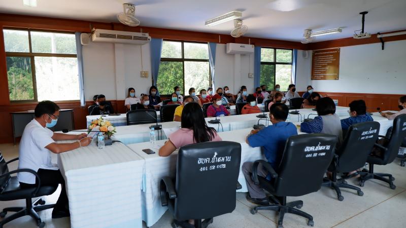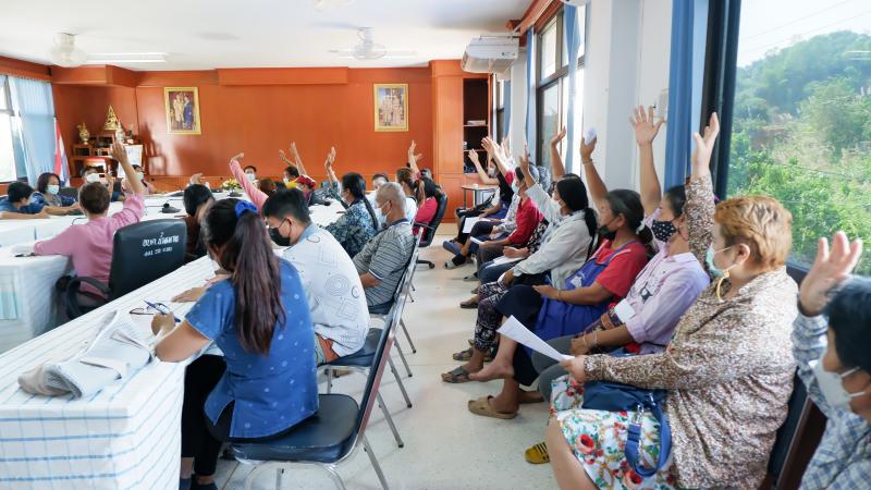 ประชุมผู้มีสิทธิ์เข้าร่วมจำหน่ายสินค้าในตลาดผลไม้บ้านไร่ม่วง ประจำปี พ.ศ.2565