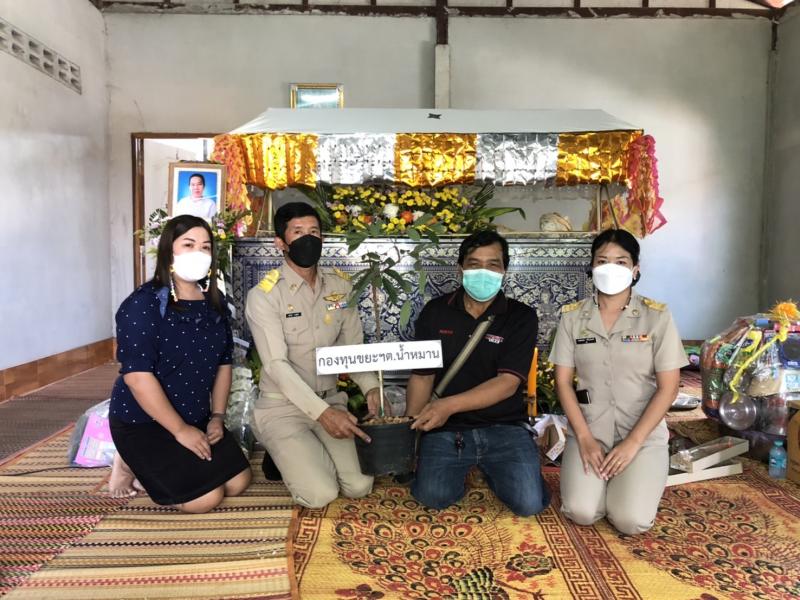 มอบพวงหรีดต้นไม้ และเงินสวัสดิการช่วยเหลือ จากกองทุนขยะ ตามโครงการตำบลปลอดขยะด้วยมือเรา