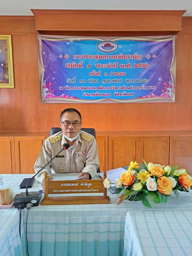รายละเอียด : วันที่ 13 กุมภาพันธ์ 2566 เวลา 09.00 น. สภาองค์การบริหารส่วนตำบลน้ำหมาน ได้จัดประชุมสภาสมัยสามัญ สมัยที่ 1 ประจำปี พ.ศ.2566 ครั้งที่ 1/2566 เพื่อรายงานงบรับ - จ่าย รายไตรมาสที่ 1 ประจำปีงบประมาณ พ.ศ.2566 เดือนตุลาคม - ธันวาคม 2565 การพิจารณากำหนดจำนวน สมัยประชุมสามัญ ประจำปี พ.ศ.2566 และกำหนดสมัยประชุมสามัญสมัยแรก ประจำปี พ.ศ.2567 และข้อราชการอื่นๆ ณ ห้องประชุมสภา องค์การบริหารส่วนตำบลน้ำหมาน อำเภอเมืองเลย จังหวัดเลย