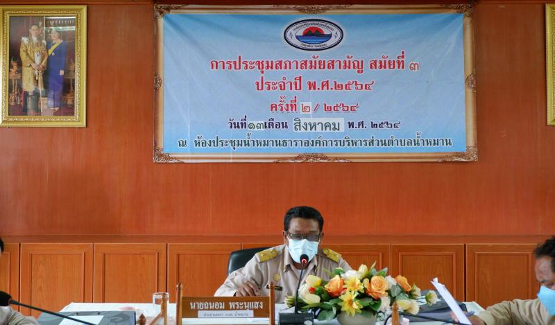 รายละเอียด : เมื่อวันที่ 13 สิงหาคม 2564 เวลา 09.00 น. สภาองค์การบริหารส่วนตำบลน้ำหมาน ได้ประชุมสภาสมัยสามัญ สมัยที่ 3 ประจำปี พ.ศ.2564 ครั้งที่ 2/2564 เพื่อพิจารณาเห็นชอบร่างข้อบัญญัติงบประมาณรายจ่ายประจำปี พ.ศ.2565 และข้อราชการอื่นๆ ณ ห้องประชุมสภาองค์การบริหารส่วนตำบลน้ำหมาน อำเภอเมืองเลย จังหวัดเลย