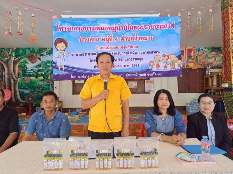 description เมื่อวันที่ 19 กันยายน 2568 เวลา 09.00 น. องค์การบริหารส่วนตำบลน้ำหมานได้จัด โครงการพระราชดำริด้านสาธารณสุข โครงการอบรมหมอหมู่บ้านในพระราชประสงค์ โดยมีนายประวิน อินทะบุญศรี นายกองค์การบริหารส่วนตำบลน้ำหมาน เป็นประธานกล่าวเปิด โครงการ ณ วัดศรีโนนเมือง บ้านส้าน หมู่ที่ 4 ตำบลน้ำหมาน อำเภอเมืองเลย จังหวัดเลย person admin