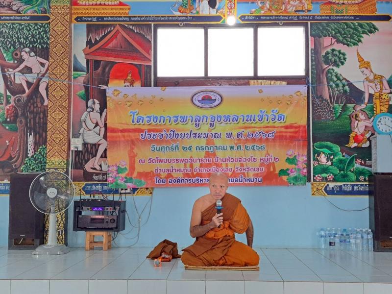 รายละเอียด : เมื่อวันที่ 25 กรกฎาคม 2568 เวลา 07.00 น. องค์การบริหารส่วนตำบลน้ำหมาน ได้จัดโครงการพาลูกจูงหลานเข้าวัด ประจำปีงบประมาณ 2568 โดยมีนายประวิน อินทะบุญศรี นายกองค์การบริหารส่วนตำบลน้ำหมาน เป็นประธานในพิธี ซึ่งมีคณะผู้บริหาร สมาชิกสภาองค์การบริหารส่วนตำบลน้ำหมาน หัวหน้าส่วนราชการ ผู้ใหญ่บ้าน ผู้นำชุมชน อสม. ประชาชนหมู่ที่2 และคณะครูนักเรียนโรงเรียนบ้านห้วยลวงไซ เข้าร่วมโครงการ ณ วัดโพนบรรพตวนาราม บ้านห้วยลวงไซ หมู่ที่2 ตำบลน้ำหมาน อำเภอเมืองเลย จังหวัดเลย
