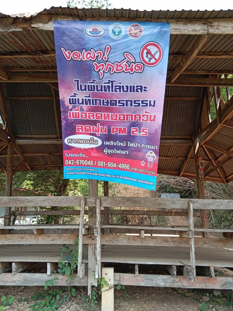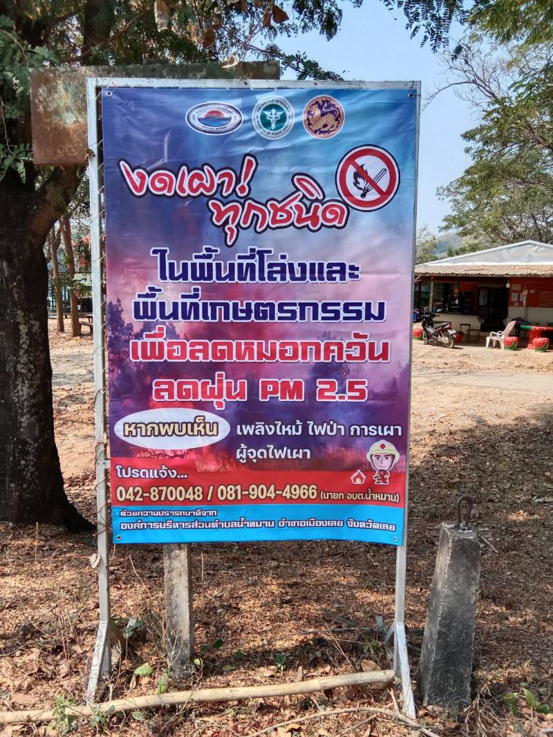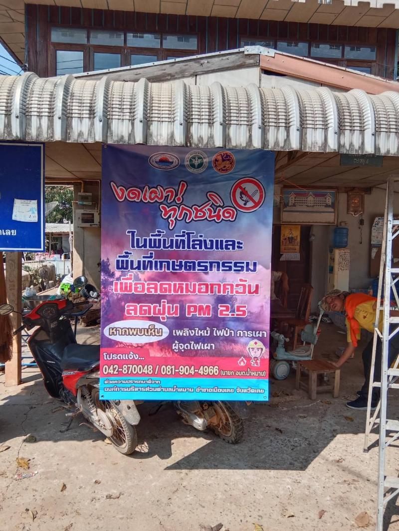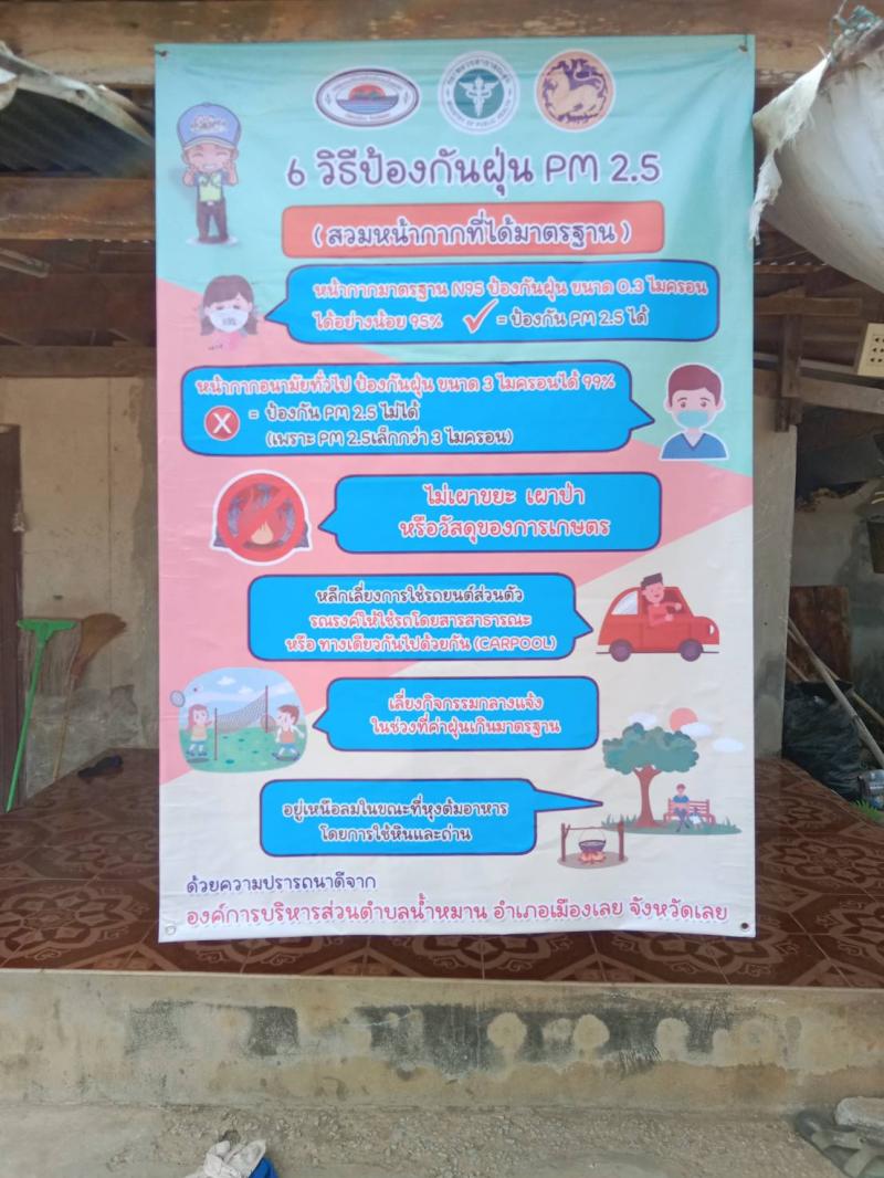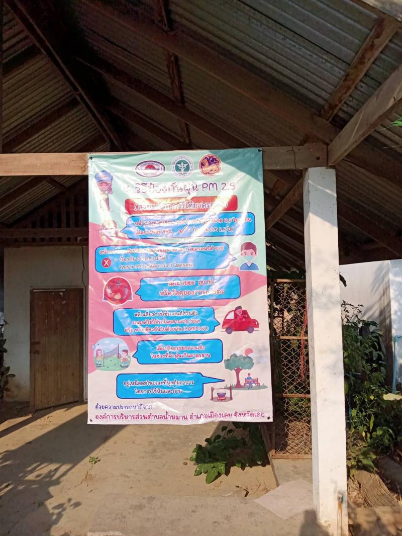รายละเอียด : องค์การบริหารส่วนตำบลน้ำหมานได้ติดตั้งป้ายประชาสัมพันธ์รณรงค์ให้ความรู้การป้องกันตนเองจากอันตรายของฝุ่นละอองขนาด ไม่เกิน 2.5 ไมครอน (PM 2.5) จำนวน 6 หมู่บ้าน และสถานที่ราชการองค์การบริหารส่วนตำบลน้ำหมาน และโรงพยาบาลส่งเสริมสุขภาพบ้านไร่ม่วง รวมจำนวน 14 ป้าย ตามโครงการป้องกันและแก้ไขปัญหาสถานการณ์ฝุ่นละอองขนาดเล็ก PM 2.5 ประจำปีงบประมาณ พ.ศ.2566