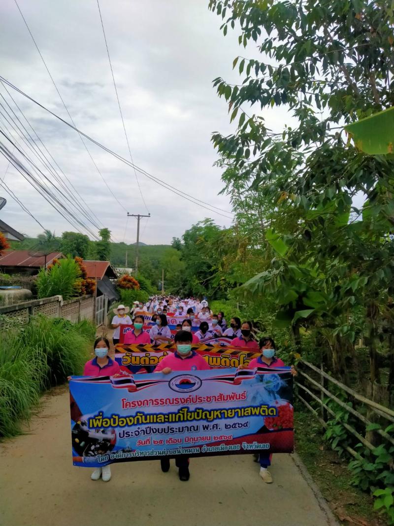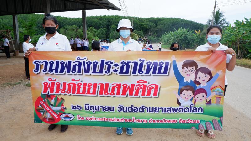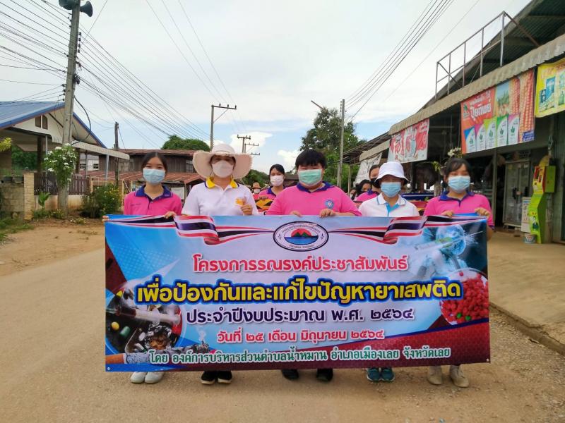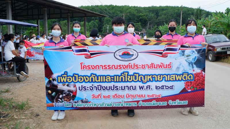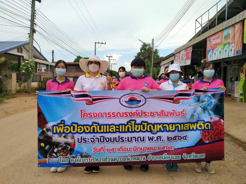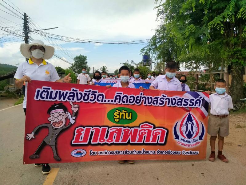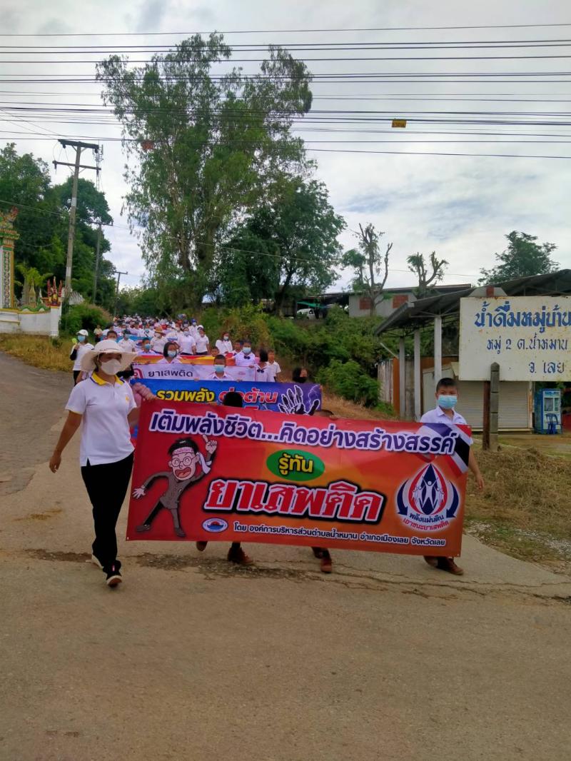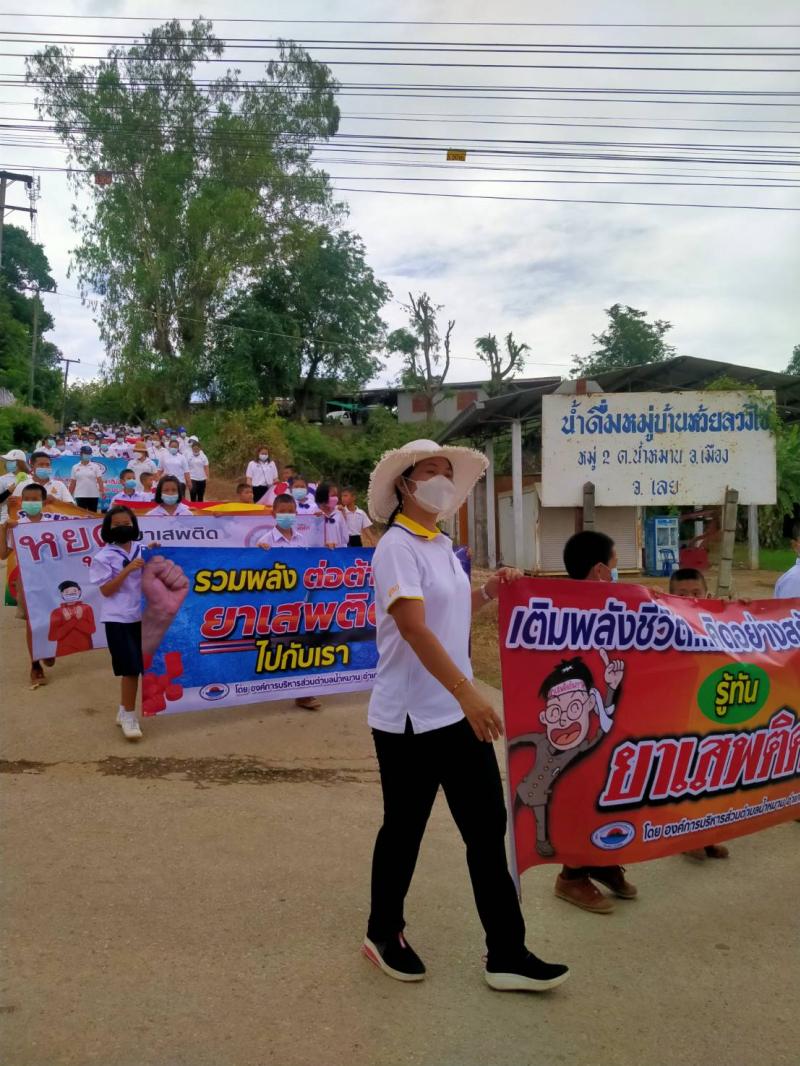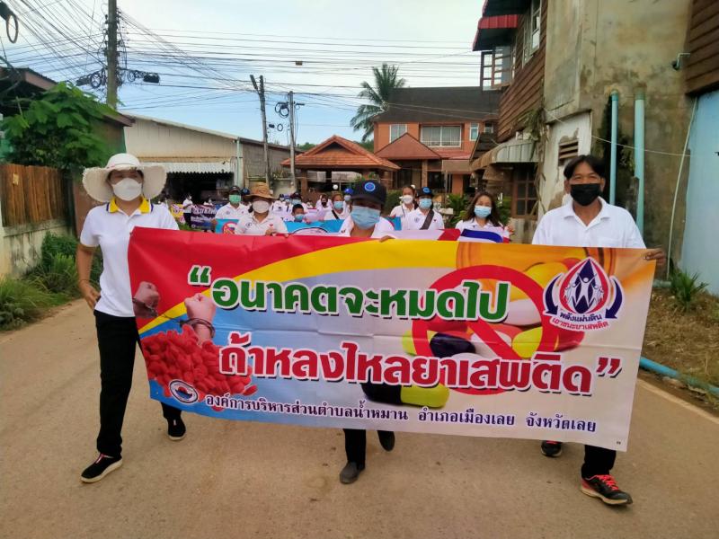 รายละเอียด : เมื่อวันที่ ๒๕ มิถุนายน พ.ศ.2564 เวลา ๑๓.๐๐ น. องค์การบริหารส่วนตำบลน้ำหมานได้จัดโครงการรณรงค์ประชาสัมพันธ์เพื่อป้องกันและแก้ไขปัญหายาเสพติด ประจำปีงบประมาณ พ.ศ.๒๕๖๔ เพื่อลดปัญหาการแพร่ระบาดของยาเสพติด และให้เด็ก เยาวชนและประชาชนทั่วไปทราบถึงโทษ และผลเสียของ ยาเสพติด โดยมีคณะผู้บริหาร สมาชิกสภาองค์การบริหารส่วนตำบลน้ำหมาน ข้าราชการ พนักงานเจ้าหน้าที่ องค์การบริหารส่วนตำบลน้ำหมาน กำนัน ผู้ใหญ่บ้าน ผู้นำชุมชน อสม. คณะครูนักเรียนโรงเรียนบ้านห้วยลวงไซ ,โรงเรียนบ้านห้วยสีเสียด - ส้าน และประชาชนตำบลน้ำหมานร่วมเดินรณรงค์ ณ บ้านห้วยลวงไซ หมู่ที่ ๒ ตำบลน้ำหมาน อำเภอเมืองเลย จังหวัดเลย