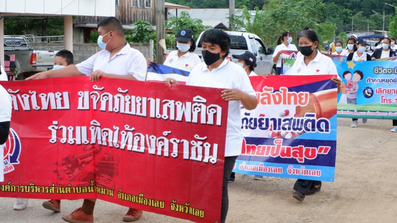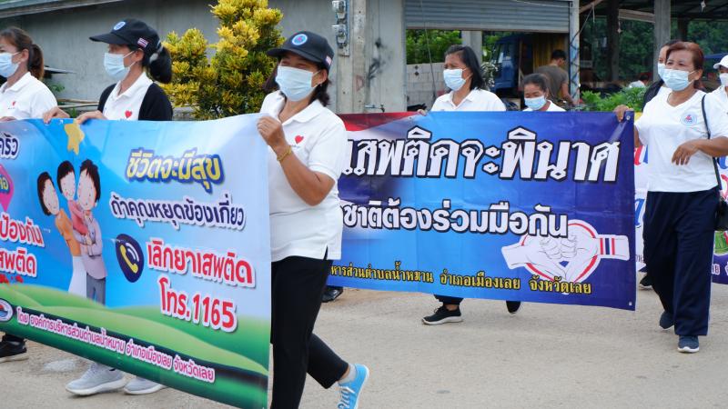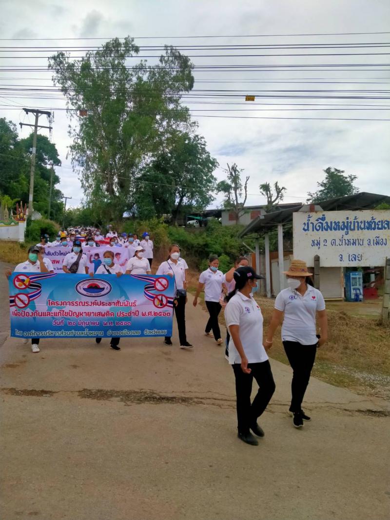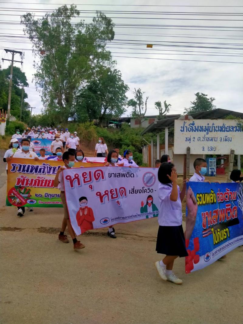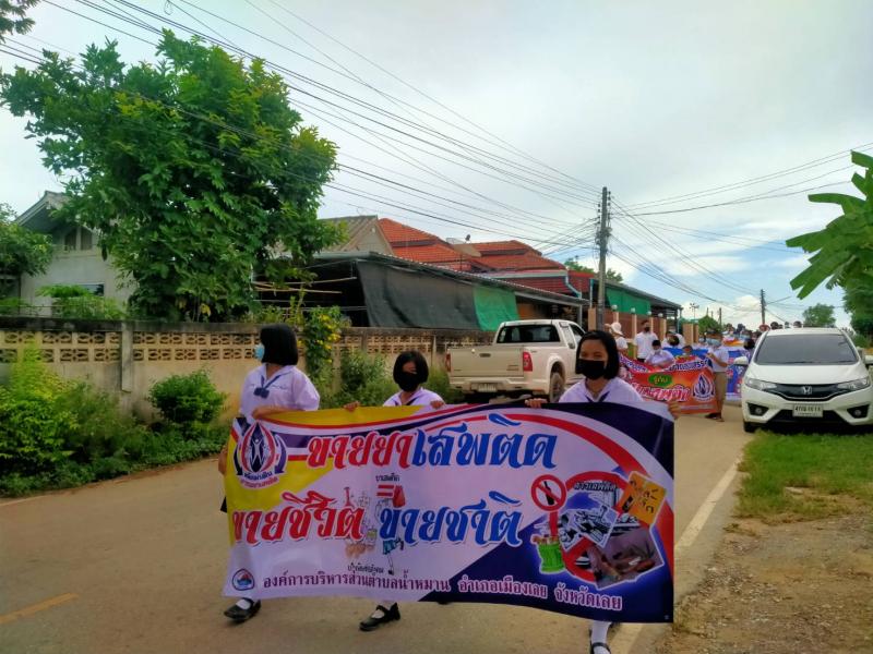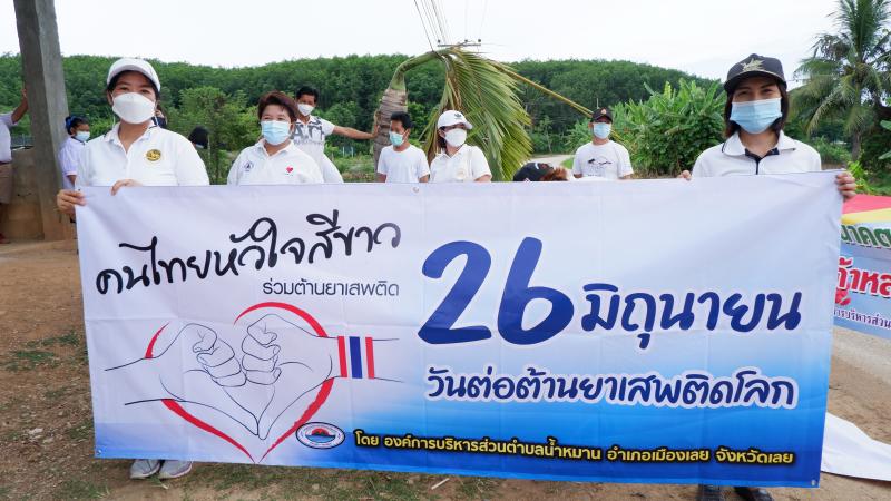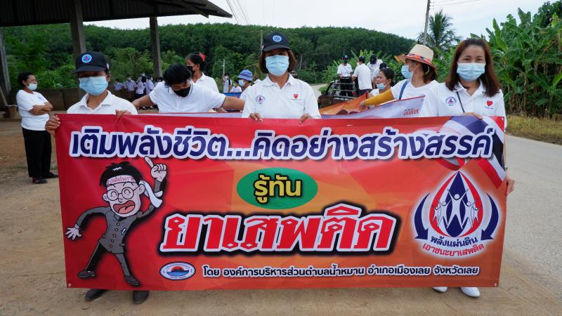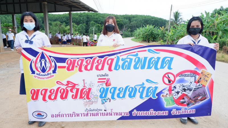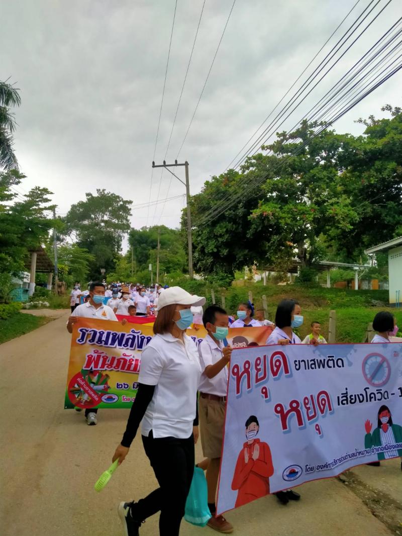 รายละเอียด : เมื่อวันที่ ๒๕ มิถุนายน พ.ศ.2564 เวลา ๑๓.๐๐ น. องค์การบริหารส่วนตำบลน้ำหมานได้จัดโครงการรณรงค์ประชาสัมพันธ์เพื่อป้องกันและแก้ไขปัญหายาเสพติด ประจำปีงบประมาณ พ.ศ.๒๕๖๔ เพื่อลดปัญหาการแพร่ระบาดของยาเสพติด และให้เด็ก เยาวชนและประชาชนทั่วไปทราบถึงโทษ และผลเสียของ ยาเสพติด โดยมีคณะผู้บริหาร สมาชิกสภาองค์การบริหารส่วนตำบลน้ำหมาน ข้าราชการ พนักงานเจ้าหน้าที่ องค์การบริหารส่วนตำบลน้ำหมาน กำนัน ผู้ใหญ่บ้าน ผู้นำชุมชน อสม. คณะครูนักเรียนโรงเรียนบ้านห้วยลวงไซ ,โรงเรียนบ้านห้วยสีเสียด - ส้าน และประชาชนตำบลน้ำหมานร่วมเดินรณรงค์ ณ บ้านห้วยลวงไซ หมู่ที่ ๒ ตำบลน้ำหมาน อำเภอเมืองเลย จังหวัดเลย
