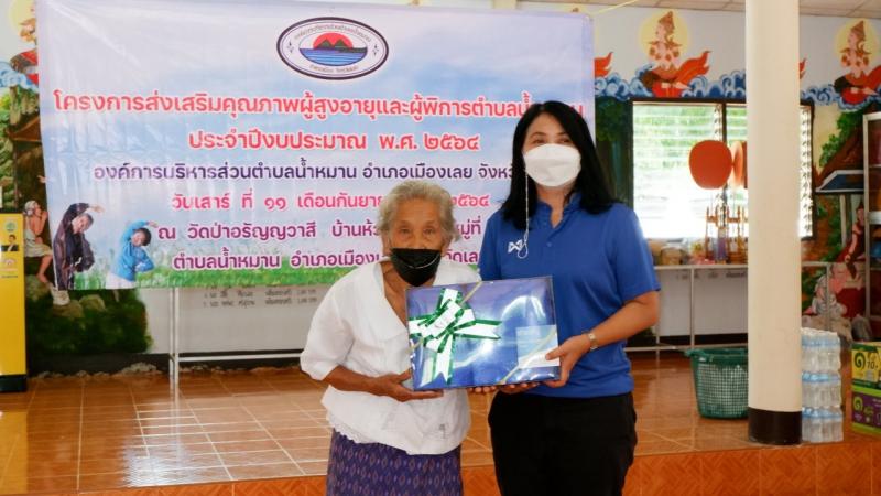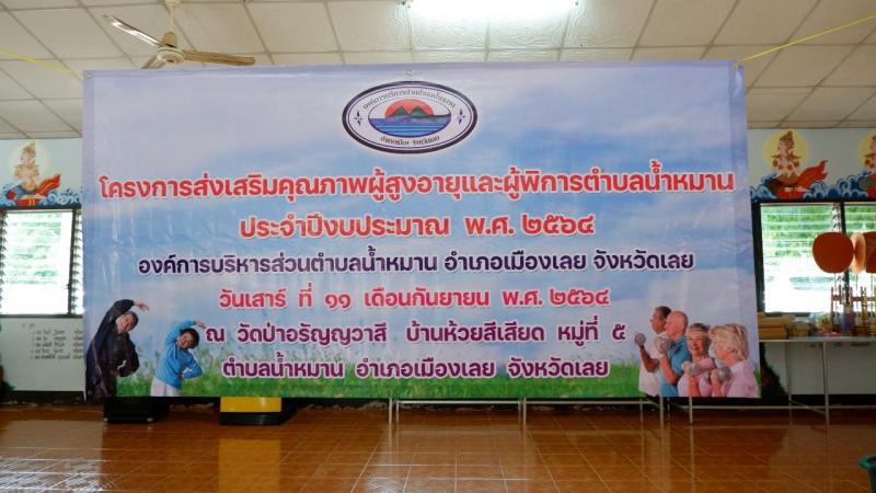 รายละเอียด : เมื่อวันที่11กันยายน 2564 เวลา 09.00 น. องค์การบริหารส่วนตำบลน้ำหมานได้จัดโครงการส่งเสริมสุขภาพผู้สูุงอายุและผู้พิการตำบลน้ำหมาน ประจำปีงบประมาณ พ.ศ.2564โดยมี รพ.สต.ไร่ม่วง ให้การอบรม เพื่อส่งเสริมคุณภาพชีวิตของผู้สูงอายุและผู้พิการให้มีสุขภาพร่างกายและสุขภาพจิตที่ดี สามารถดำรงชีวิตได้ด้วยตัวเอง ไม่เป็นภาระแก่ครอบครัว และได้มอบรางวัล รองชนะเลิศ ระดับอำเภอเมืองเลย ให้กับผู้สูงอายุที่มีสุขภาพดี จำนวน 1 ท่าน ณ วัดป่าอรัญญวาสี บ้านห้วยสีเสียด หมู่ที่ 5 ตำบลน้ำหมาน อำเภอเมืองเลย จังหวัดเลย
