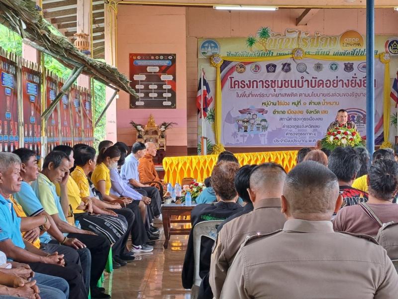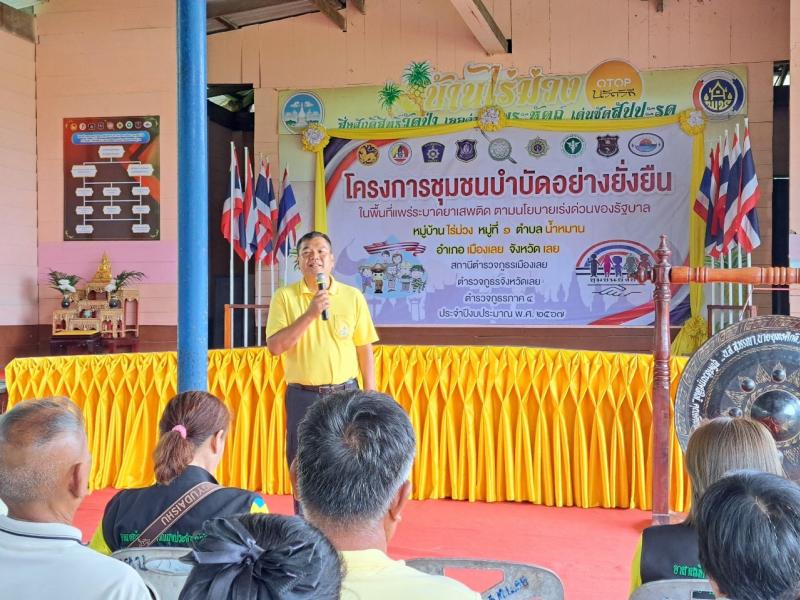รายละเอียด : เมื่อวันที่ 10 มิถุนายน 2567 เวลา 10.00 น. นายประวิน อินทะบุญศรี นายกองค์การบริหารส่วนตำบลน้ำหมาน พร้อมด้วยคณะผู้บริหาร และนางสาวพนารัตน์ วงษ์ชมภู ปลัดองค์การบริหารส่วนตำบลน้ำหมาน ร่วมโครงการชุมชนบำบัดอย่างยั่งยืนในพื้นที่แพร่ระบาดยาเสพติดตามนโยบายเร่งรัดของรัฐบาล ประจำปีงบประมาณ 2567 ของสถานีตำรวจภูธรเมืองเลย ณ โรงเรียนมโนบุเรศรบำรุงการบ้านไร่ม่วง หมู่ที่1 ตำบลน้ำหมาน อำเภอเมืองเลย จังหวัดเลย