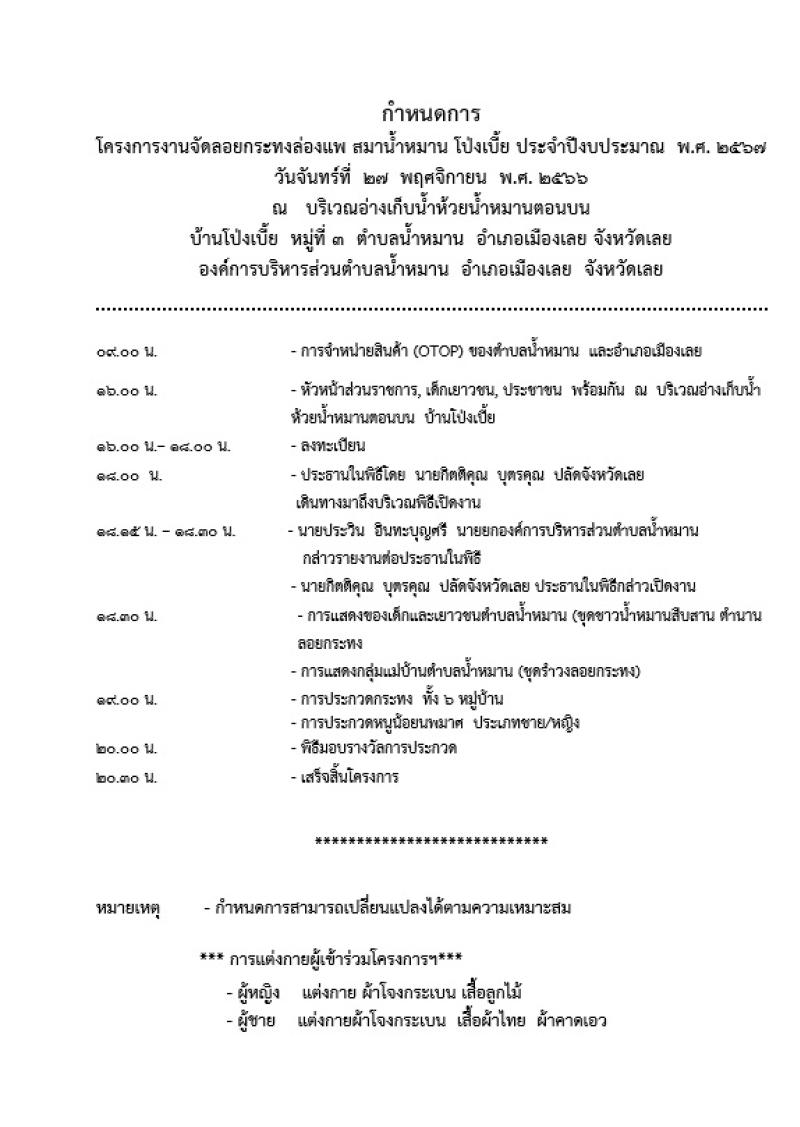 โครงการลอยกระทง ล่องแพ สมาน้ำหมาน โป่งเบี้ย