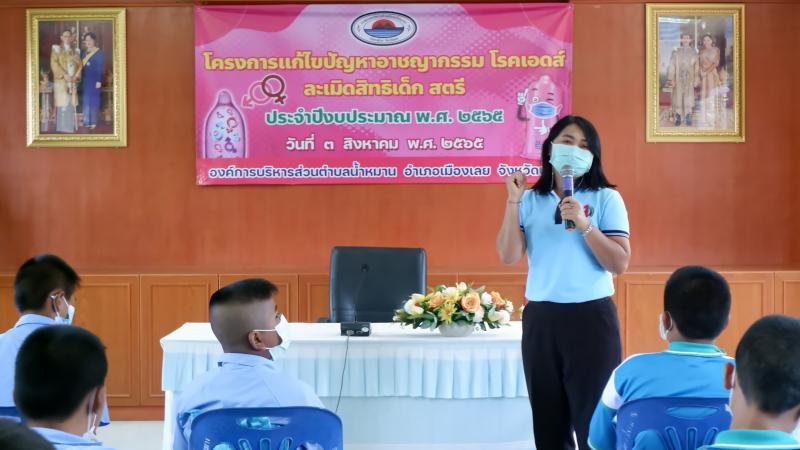 รายละเอียด : วันที่ 3 สิงหาคม 2565 เวลา 09.00 น. องค์การบริหารส่วนตำบลน้ำหมาน ได้จัดโครงการแก้ไขปัญหาอาชญากรรม โรคเอดส์ ละเมิดสิทธฺิเด็ก สตรี ประจำปีงบประมาณ 2565 เพื่อให้ความรู้การป้องกันแก้ไขปัญหาอาชญากรรม โรคเอดส์ ละเมิดสิทธิเด็ก สตรี ตำบลน้ำหมานให้มีประสิทธิภาพ โดยมีนายประวิน อินทะบุญศรี นายกองค์การบริหารส่วนตำบลน้ำหมาน เป็นประธานในพิธี ซึ่งมีคณะผู้บริหาร สมาชิกสภาองค์การบริหารส่วนตำบลน้ำหมาน นางสาวพนารัตน์ วงษ์ชมภู ปลัดองค์การบริหารส่วนตำบล น้ำหมาน หัวหน้าส่วนราชการ คณะครูนักเรียน โรงเรียนห้วยลวงไช โรงเรียนห้วยสีเสียด - ส้าน โรงเรียนมโนบุเรศรบำรุงการ รพ.สต. ไร่ม่วง สำนักงานพัฒนาสังคมและความมั่นคงของมนุษย์จังหวัดเลย กำนัน ผู้ใหญ่บ้าน ผู้นำชุมชน อสม.เข้าร่วมโครงการ ณ ห้องประชุม น้ำหมานธารา ชั้น2 อำเภอเมืองเลย จังหวัดเลย