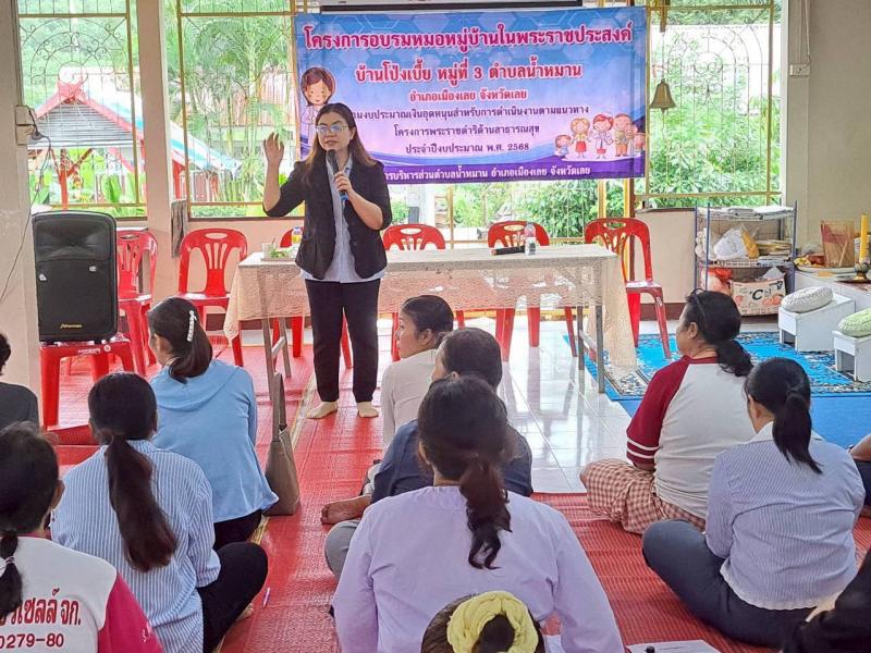 description เมื่อวันที่ 22 กันยายน 2568 เวลา 09.00 น. องค์การบริหารส่วนตำบลน้ำหมานได้จัดโครงการพระราชดำริด้านสาธารณสุข โครงการอบรมหมอหมู่บ้านในพระราชประสงค์ โดยมีนายประวิน อินทะบุญศรี นายกองค์การบริหารส่วนตำบลน้ำหมาน เป็นประธานกล่าวเปิดโครงการ ณ วัดโป่งเบี้ย บ้านโป่งเบี้ย หมู่ที่ 3 ตำบลน้ำหมาน อำเภอเมืองเลย จังหวัดเลย person admin