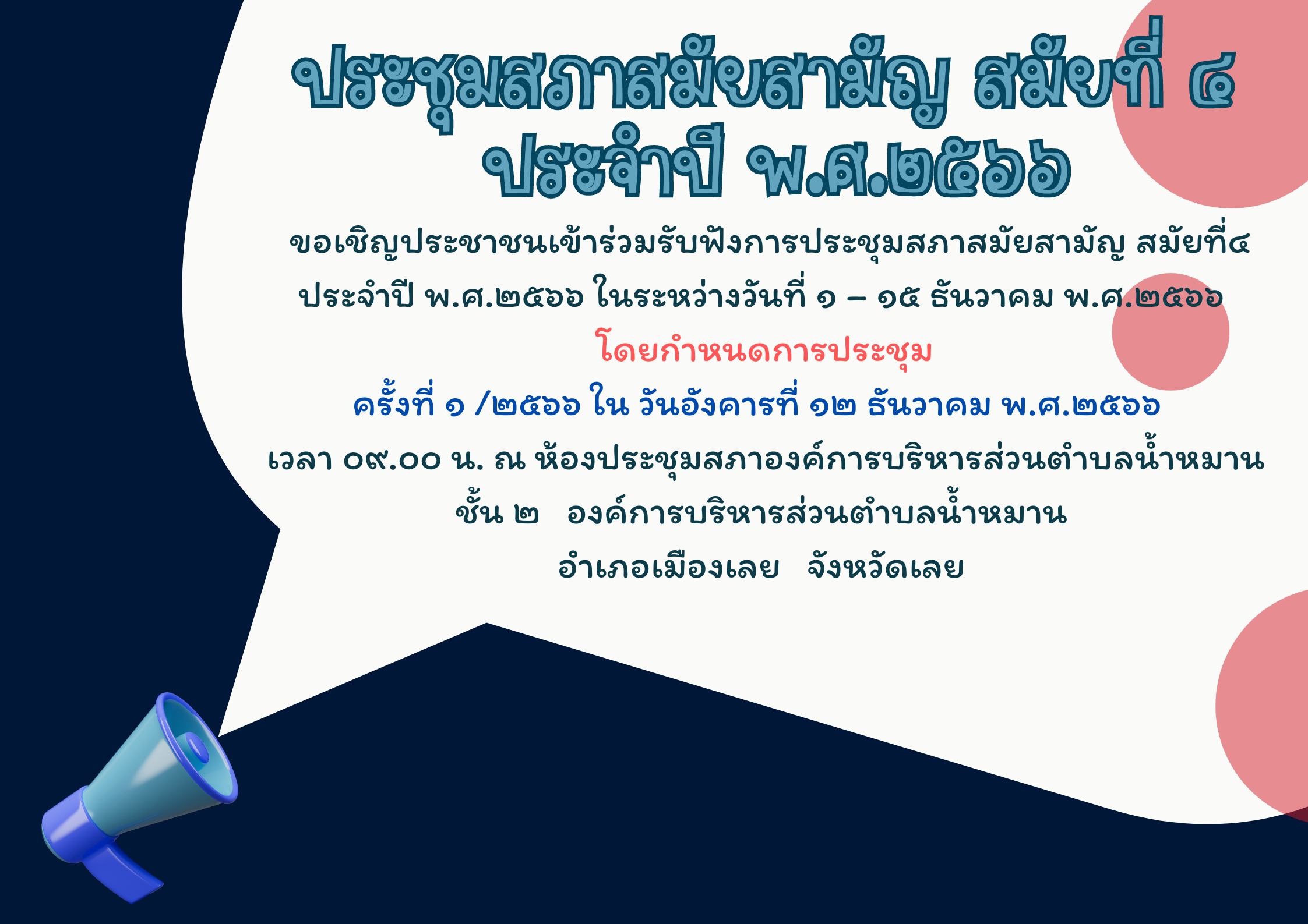 ประชุมสภาสมัยสามัญ สมัยที่ 4 ประจำปี พ.ศ.2566 ครั้งที่ 1/2566 [12 ธันวาคม 2566]