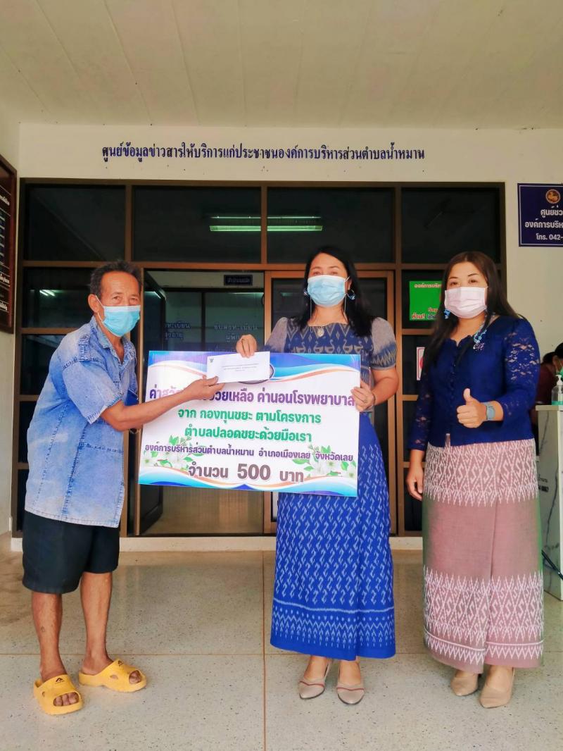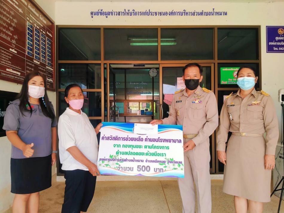 มอบเงินสวัสดิการช่วยเหลือค่านอนโรงพยาบาล จำนวน 500 บาท ตามโครงการตำบลปลอดขยะด้วยมือเรา [27 พฤษภาคม 2565]