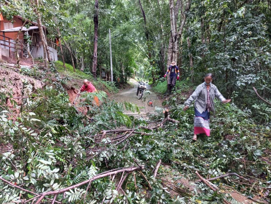ตัดต้นไม้ที่ล้มขวางถนน วัดป่าซำบุ่น บ้านไร่ม่วง หมู่ที่1 [28 กันยายน 2564]